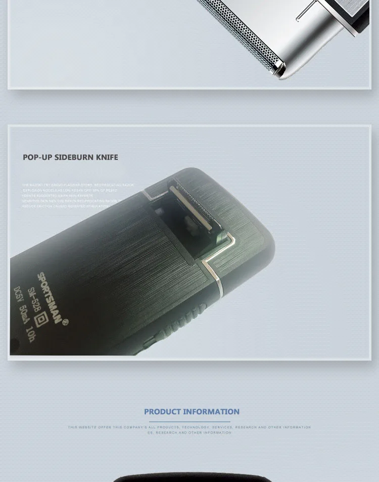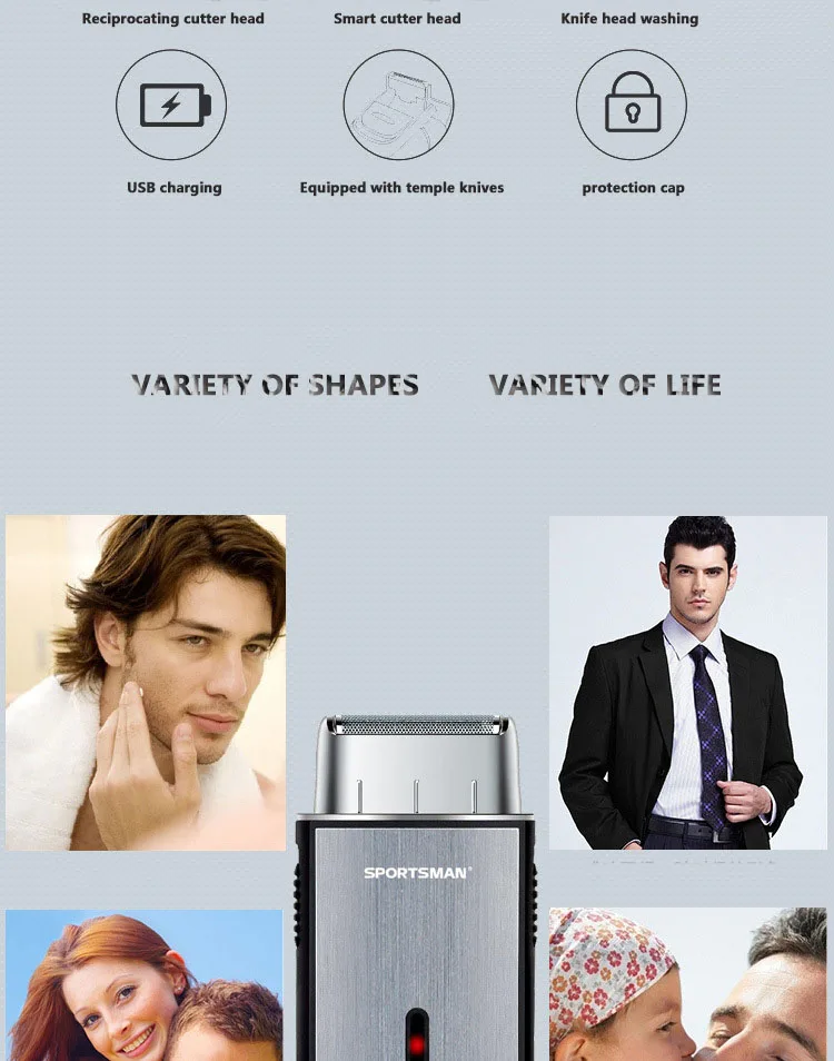 Il prodotto è un mini rasoio multifunzione, con una credenza push-out dietro il corpo.