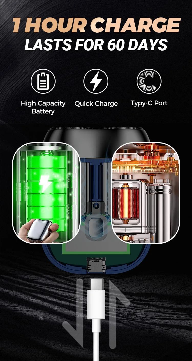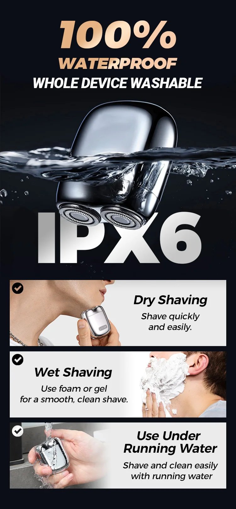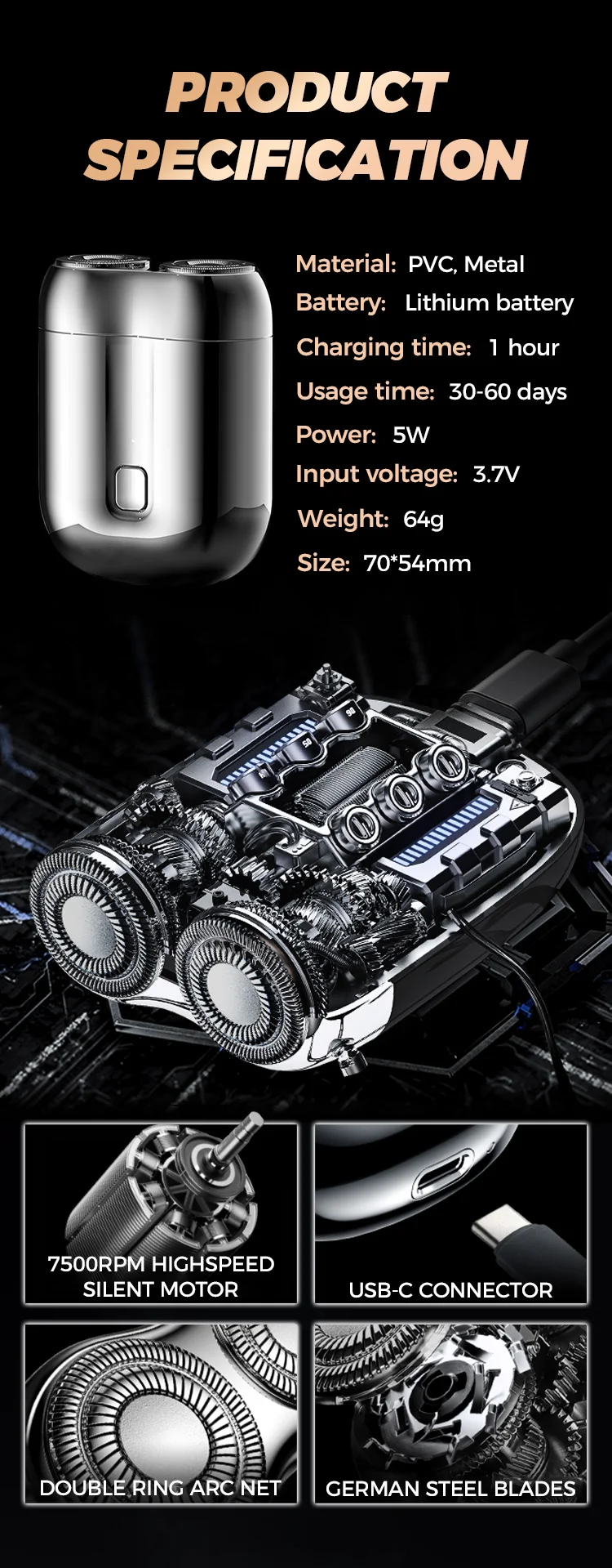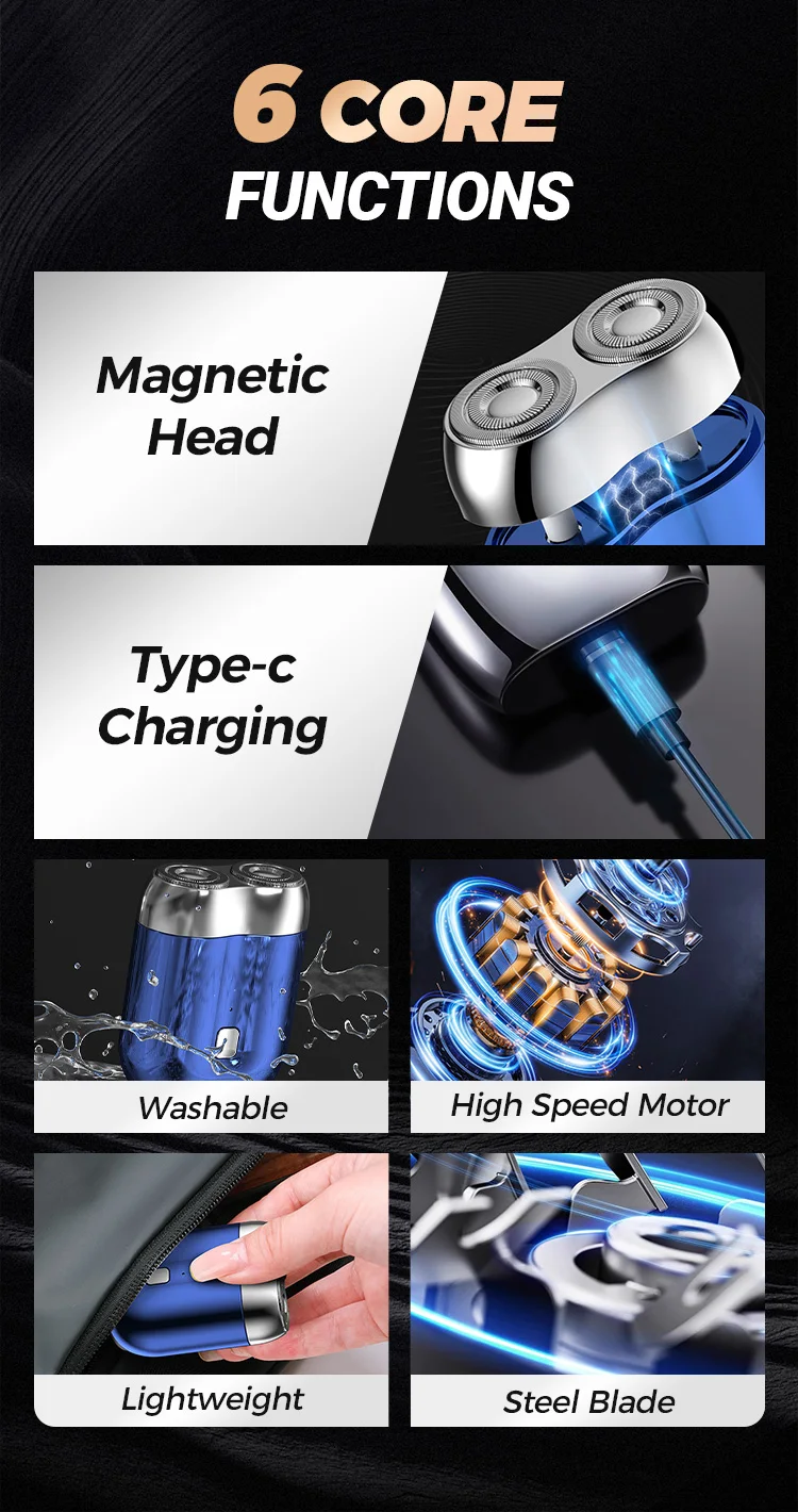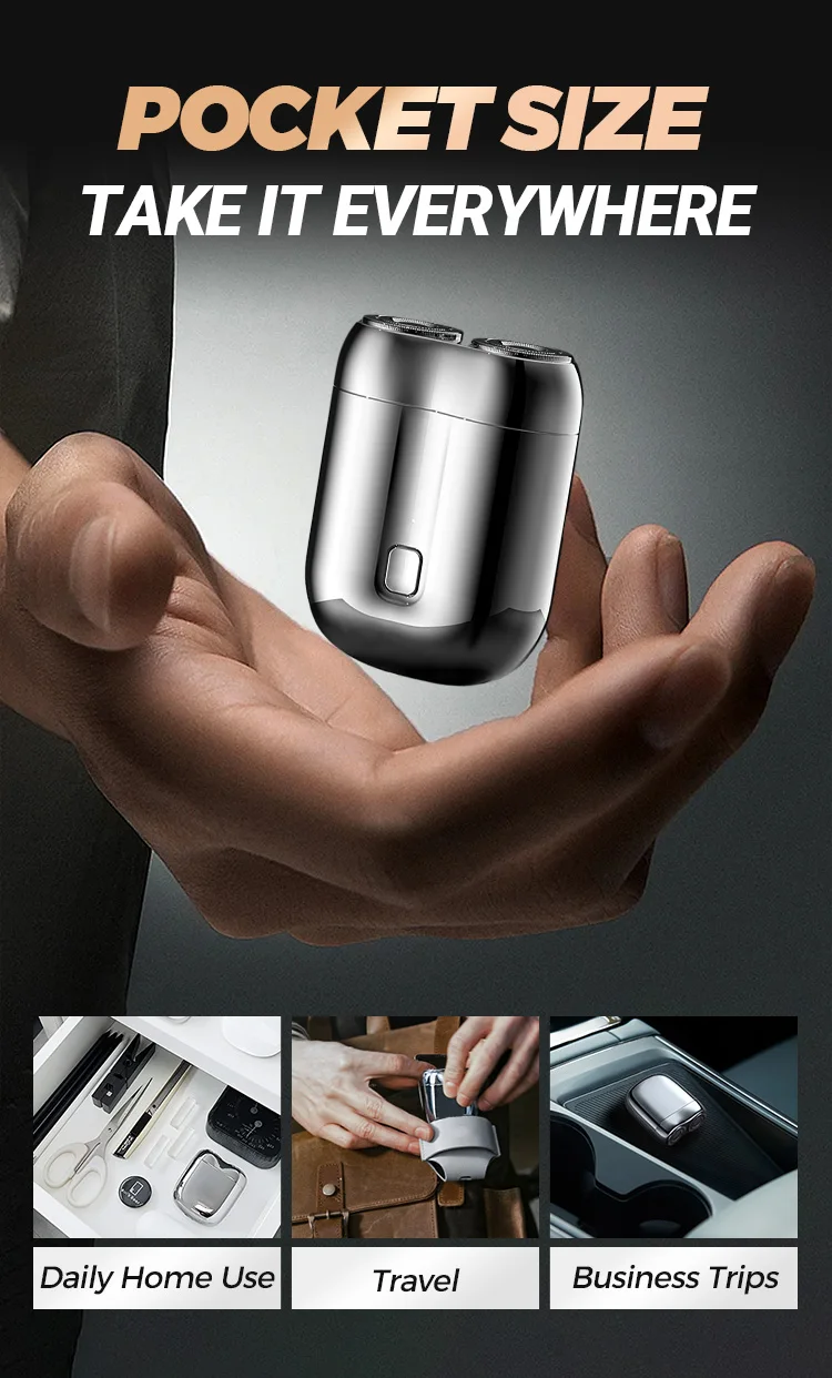 3 recensioni per Mini rasoio impermeabile portatile ricaricabile USB da uomo con aspirazione magnetica per rasatura elettrica a doppia testa