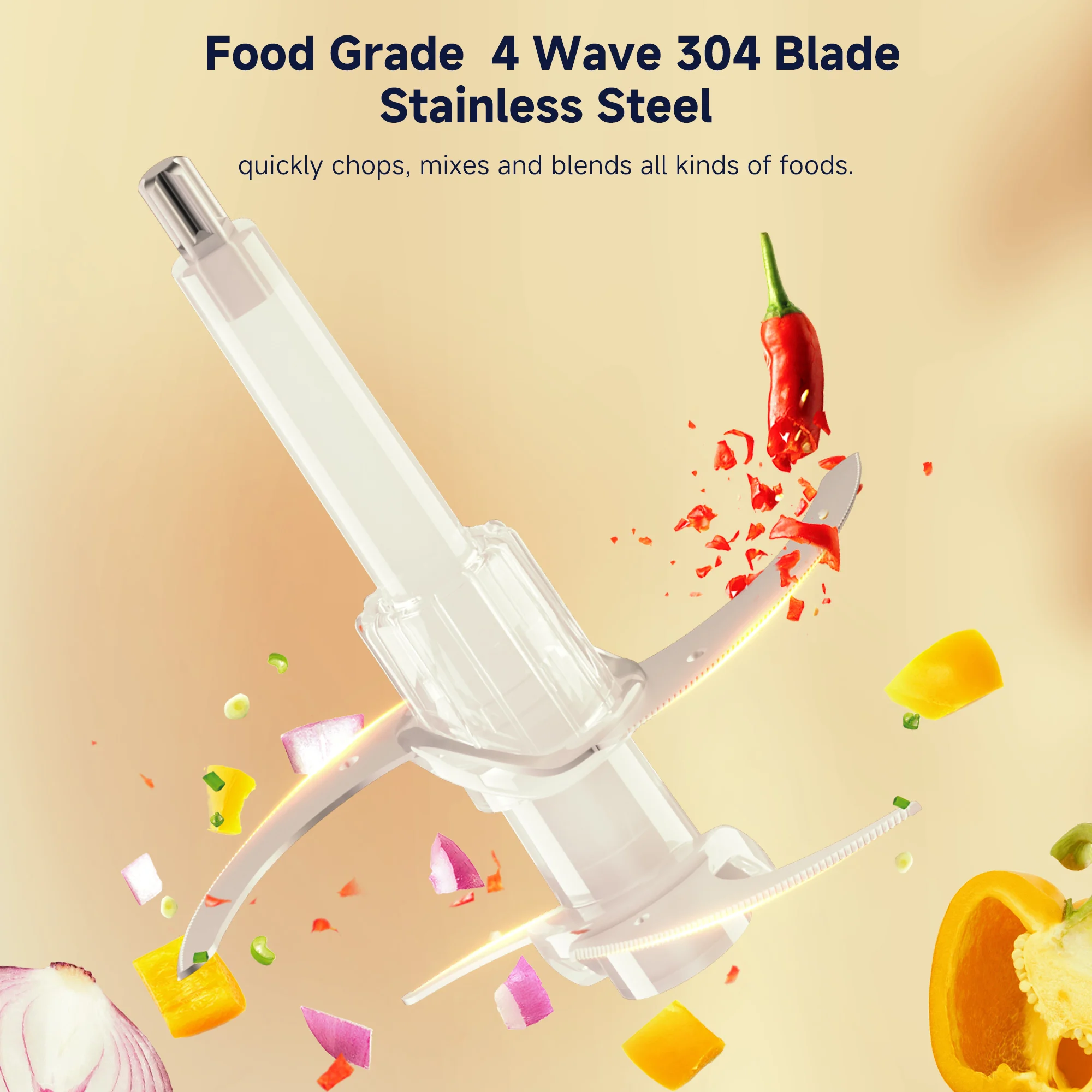 Dotato di un motore da 300 W e lame affilate a due livelli in acciaio inossidabile, questo dispositivo schiaccia, taglia e riduce senza sforzo con un controllo preciso.Ottieni una macinatura ottimale in soli 20 secondi.Non utilizzare continuamente per più di 30 secondi per ciclo.