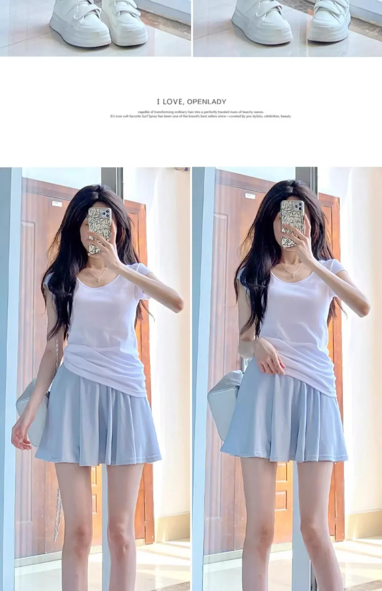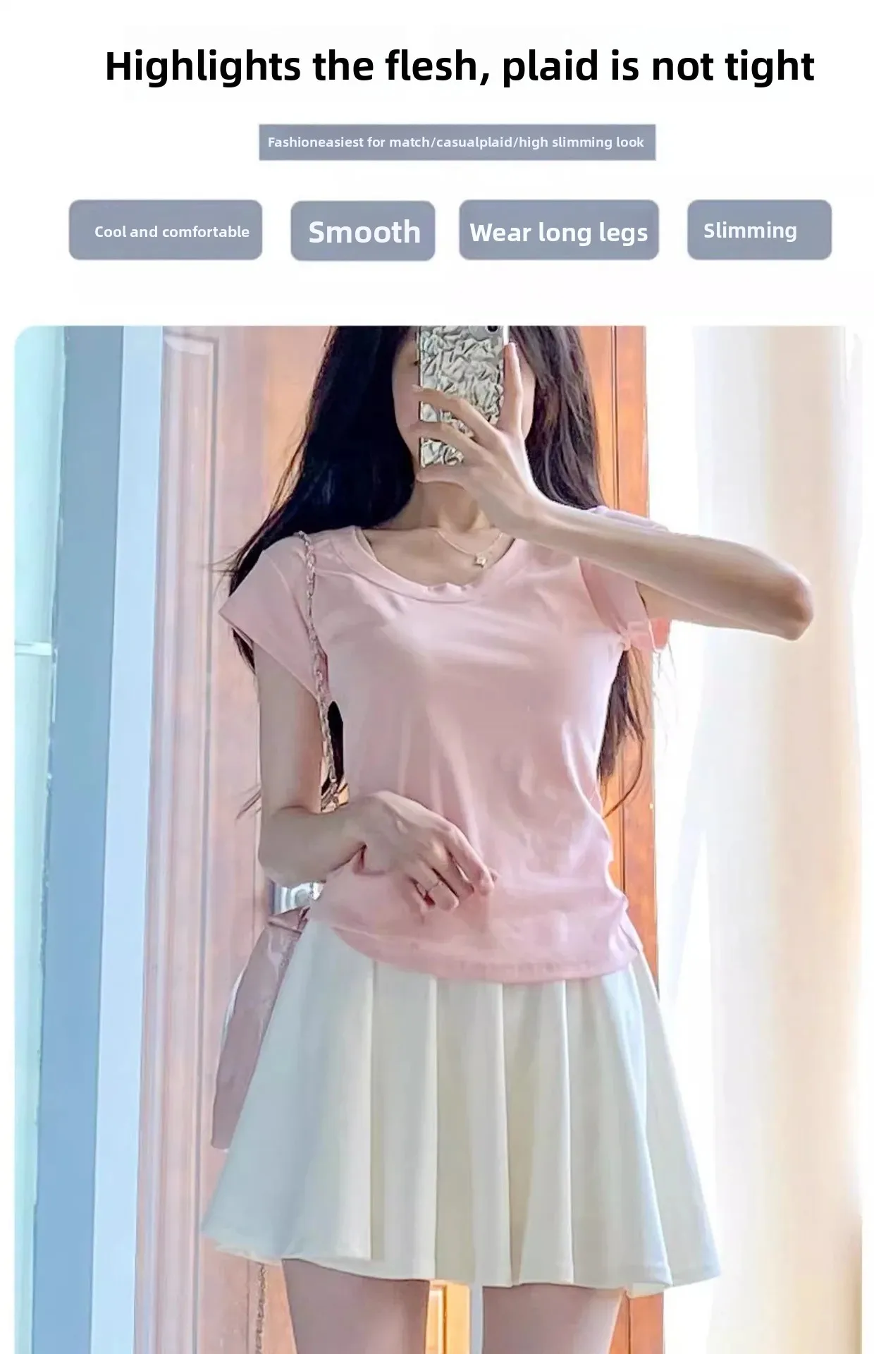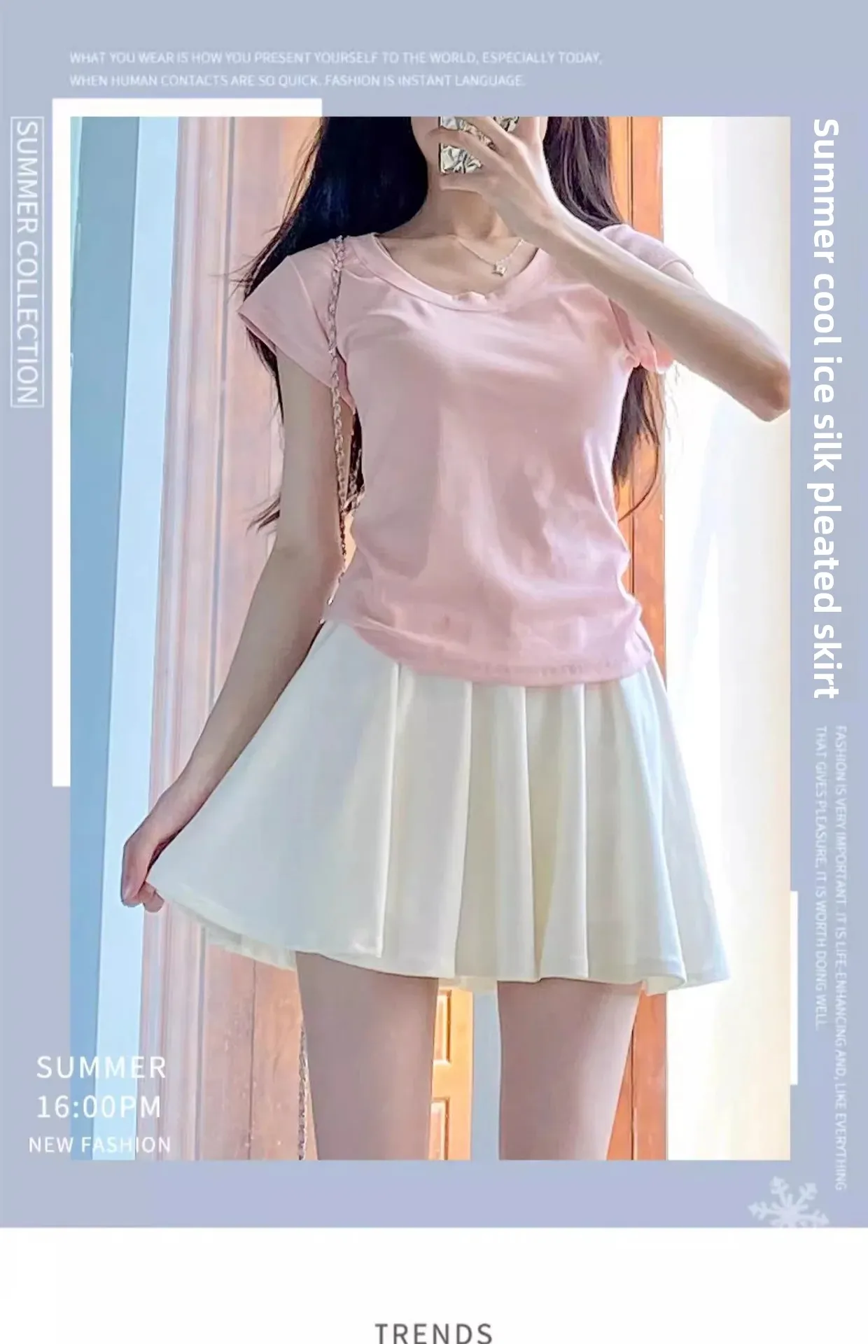 Minigonna a pieghe in seta di ghiaccio Donna Estate Nuovo stile Studente Versatile Dolce Anti-luce Vita alta Dimagrante Gonna corta drappeggiata Pan 1Minigonna a pieghe in seta di ghiaccio Donna Estate Nuovo stile Studente Versatile Dolce Anti-luce Vita alta Dimagrante Gonna corta drappeggiata Pan