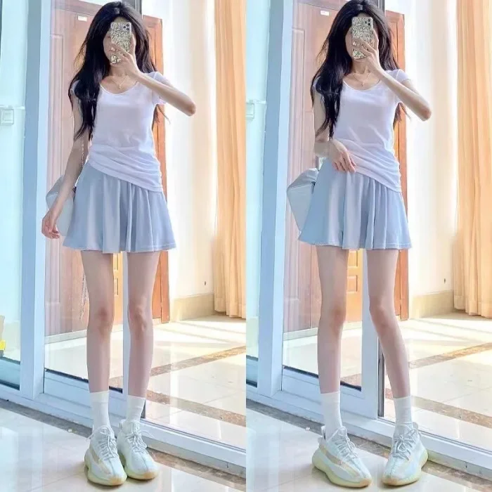 Minigonna a pieghe in seta di ghiaccio Donna Estate Nuovo stile Studente Versatile Dolce Anti-luce Vita alta Dimagrante Gonna corta drappeggiata Pan 1Minigonna a pieghe in seta di ghiaccio Donna Estate Nuovo stile Studente Versatile Dolce Anti-luce Vita alta Dimagrante Gonna corta drappeggiata Pan