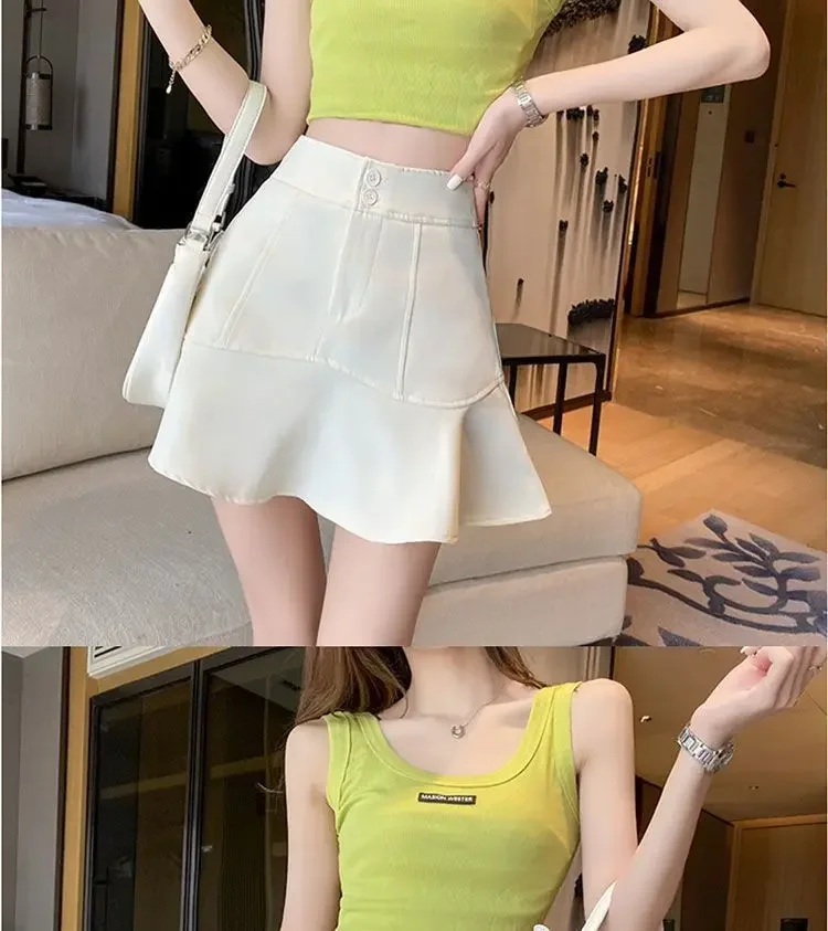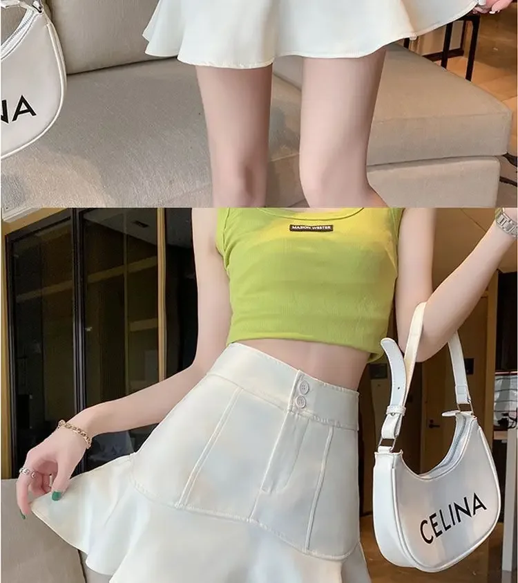 • Taglio slim a trapezio:Il taglio slim a trapezio della gonna garantisce una vestibilità comoda pur mantenendo un aspetto elegante e raffinato.