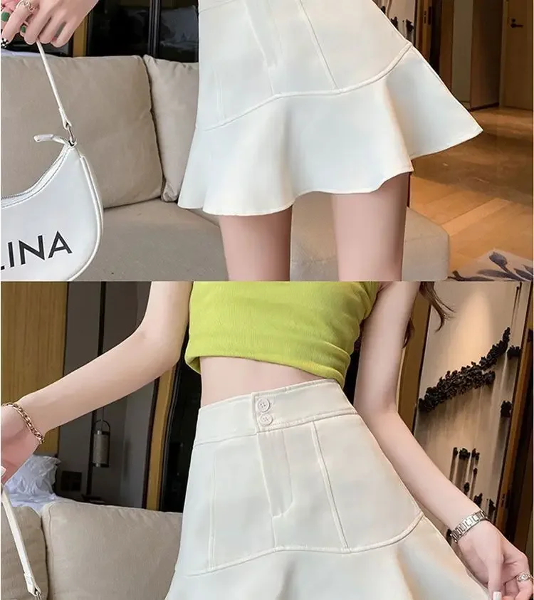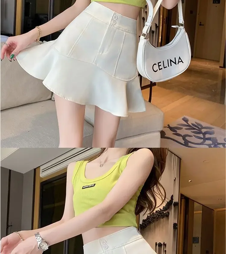 • Gonna a coda di pesce con volant:Caratterizzato da una gonna a coda di pesce arricciata, questo capo aggiunge un tocco di eleganza e femminilità al tuo guardaroba estivo.