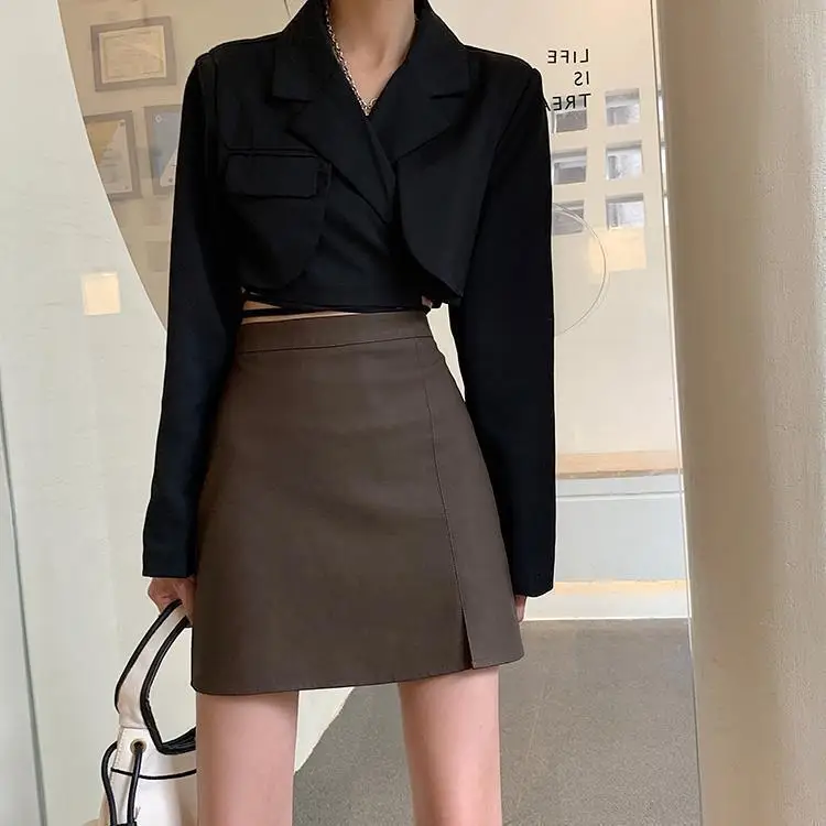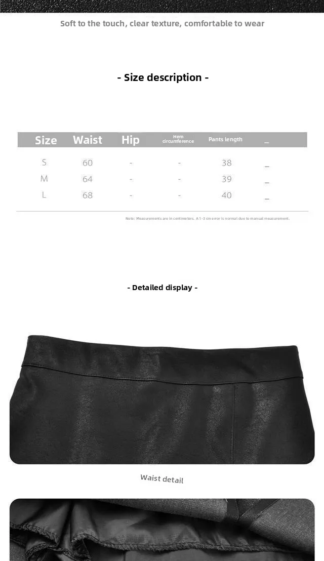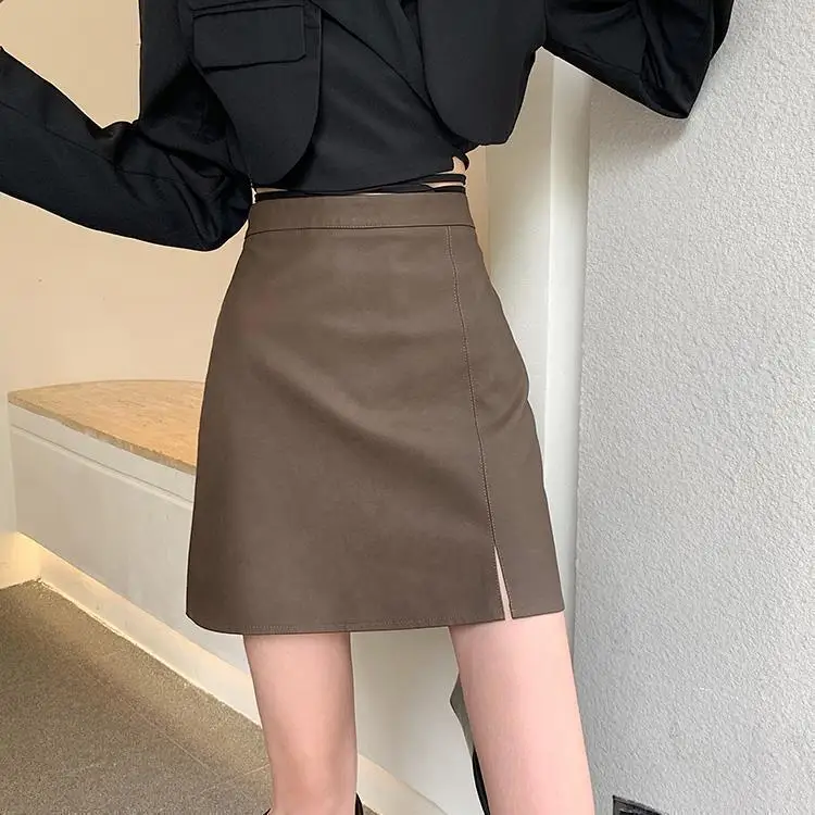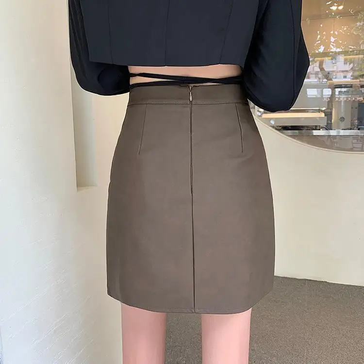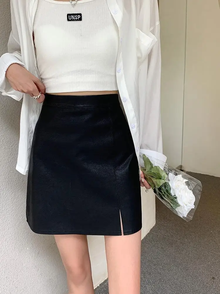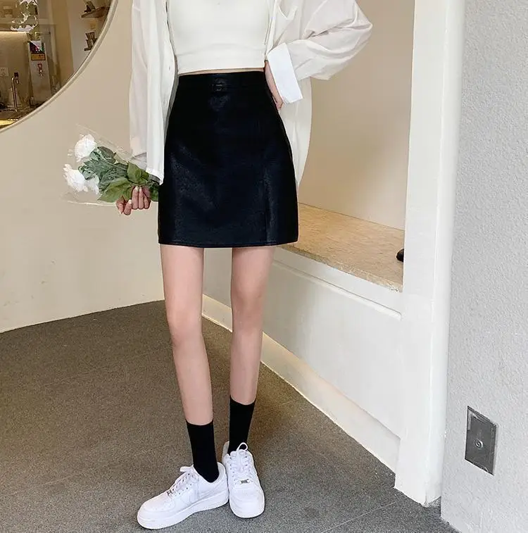 Realizzata in pregiata pelle PU, questa gonna offre resistenza e un look elegante e moderno, perfetto per ogni occasione.