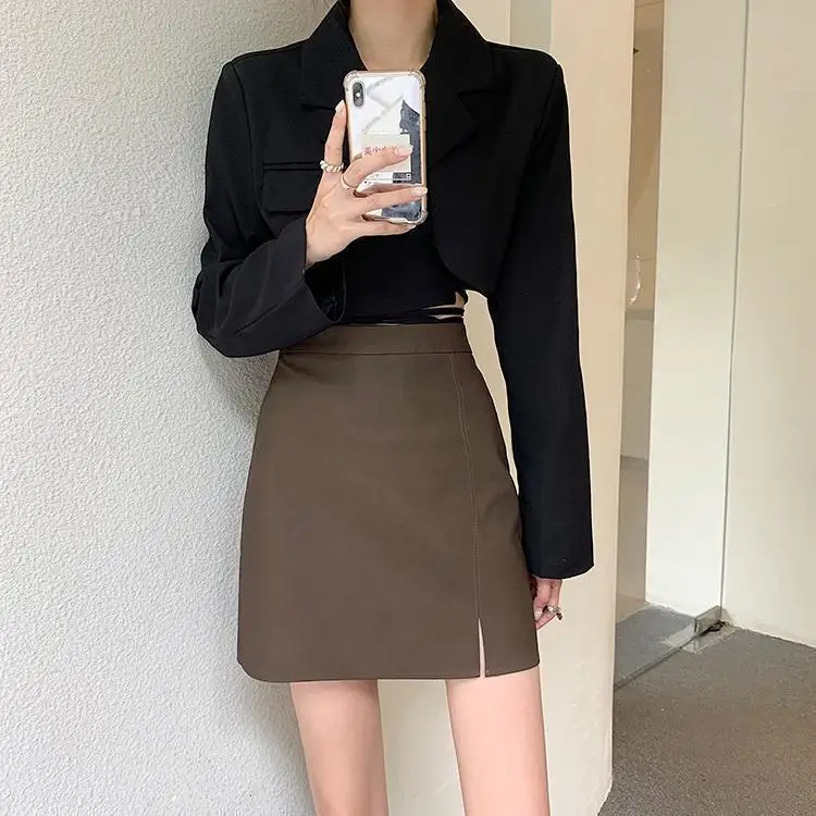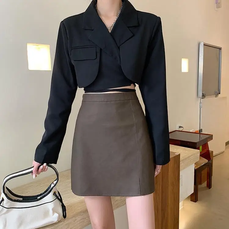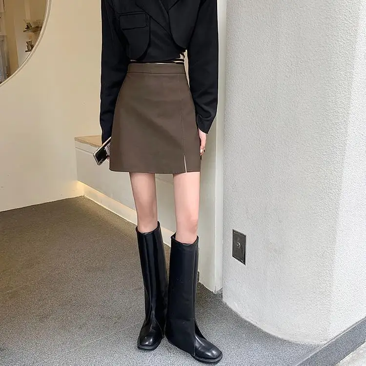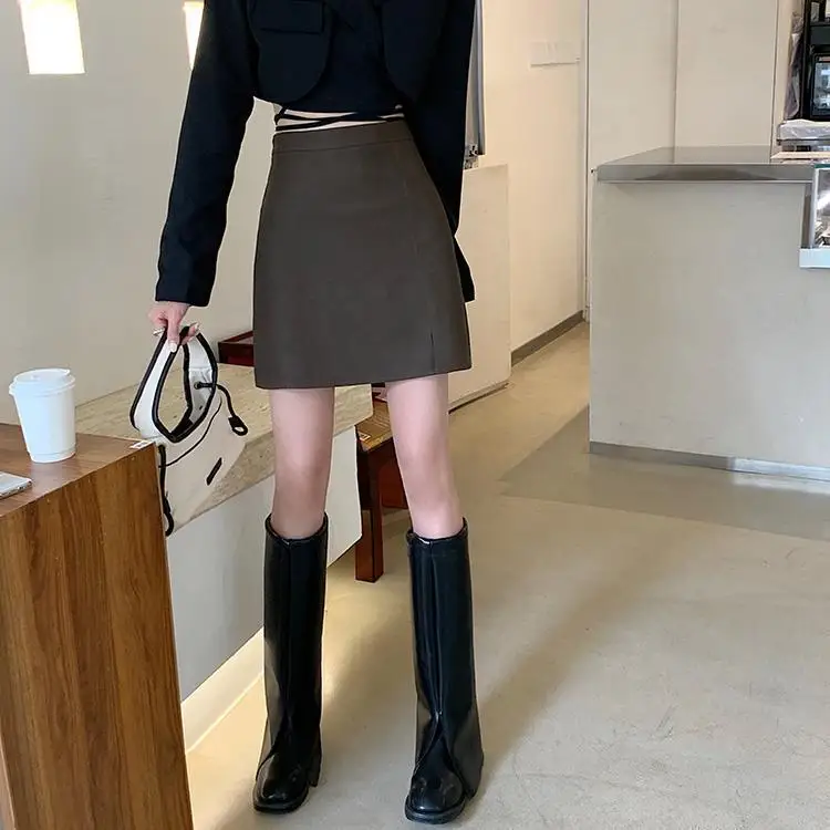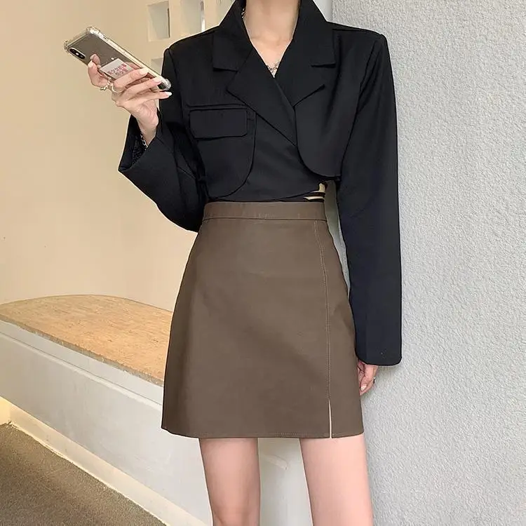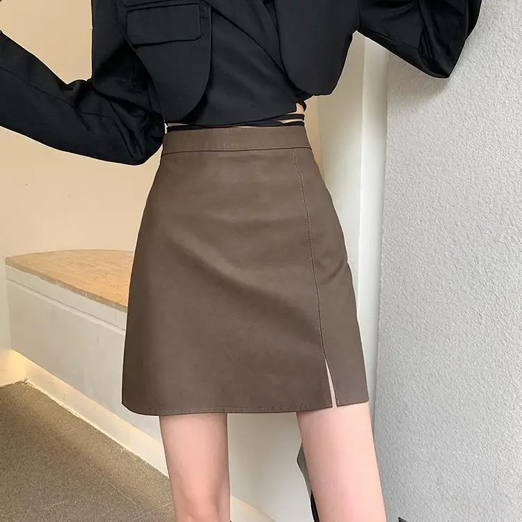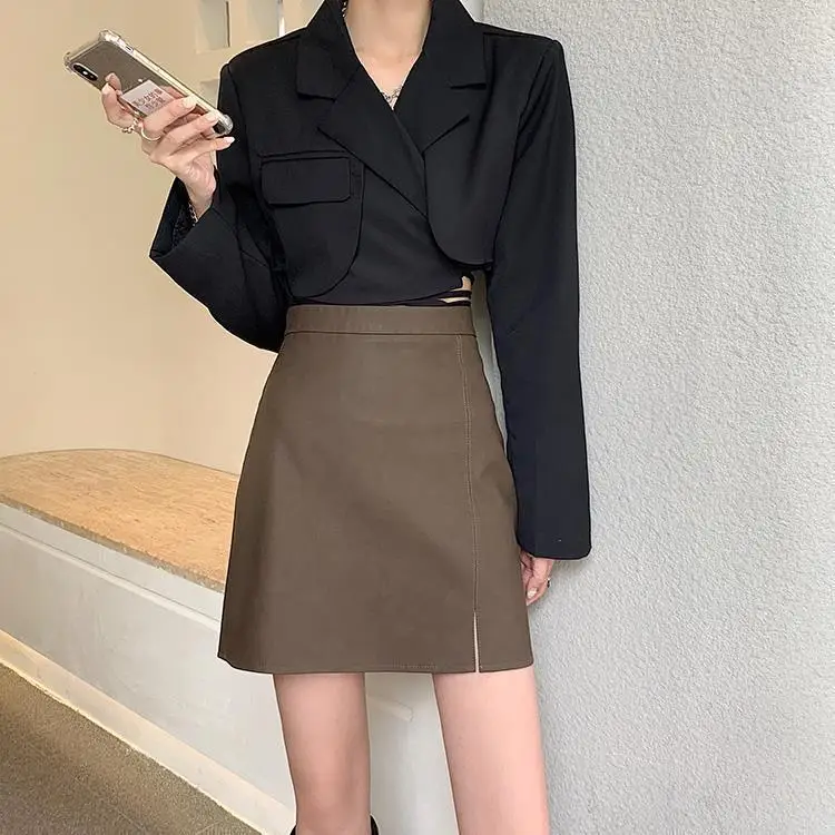 Realizzata in pregiata pelle PU, questa gonna offre resistenza e un look elegante e moderno, perfetto per ogni occasione.