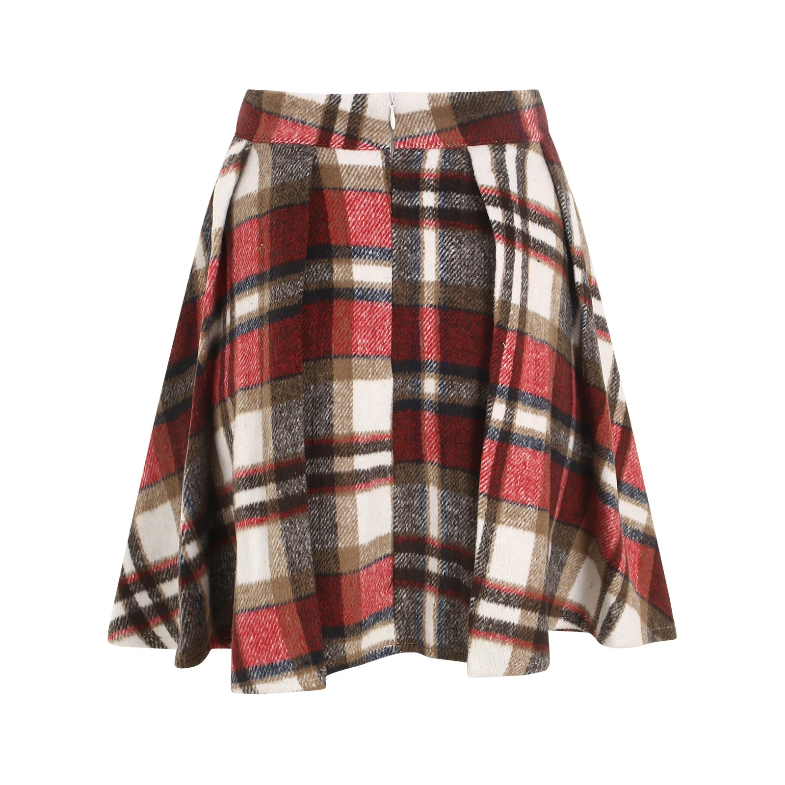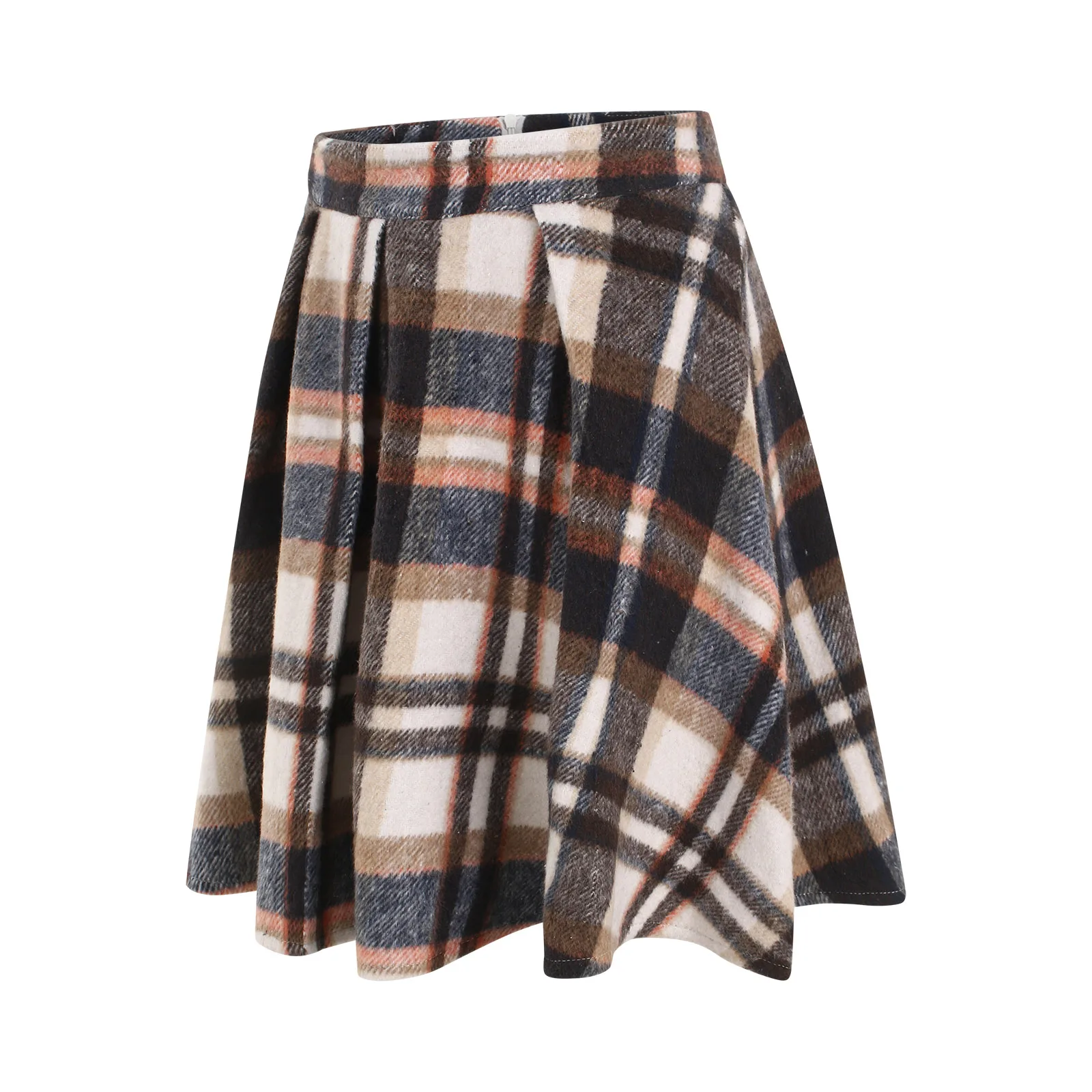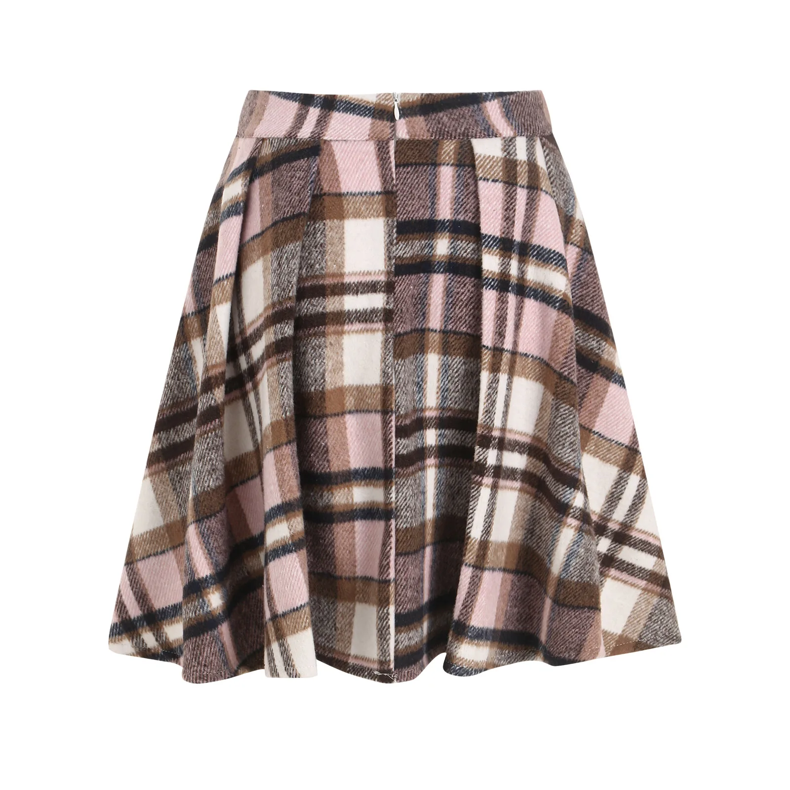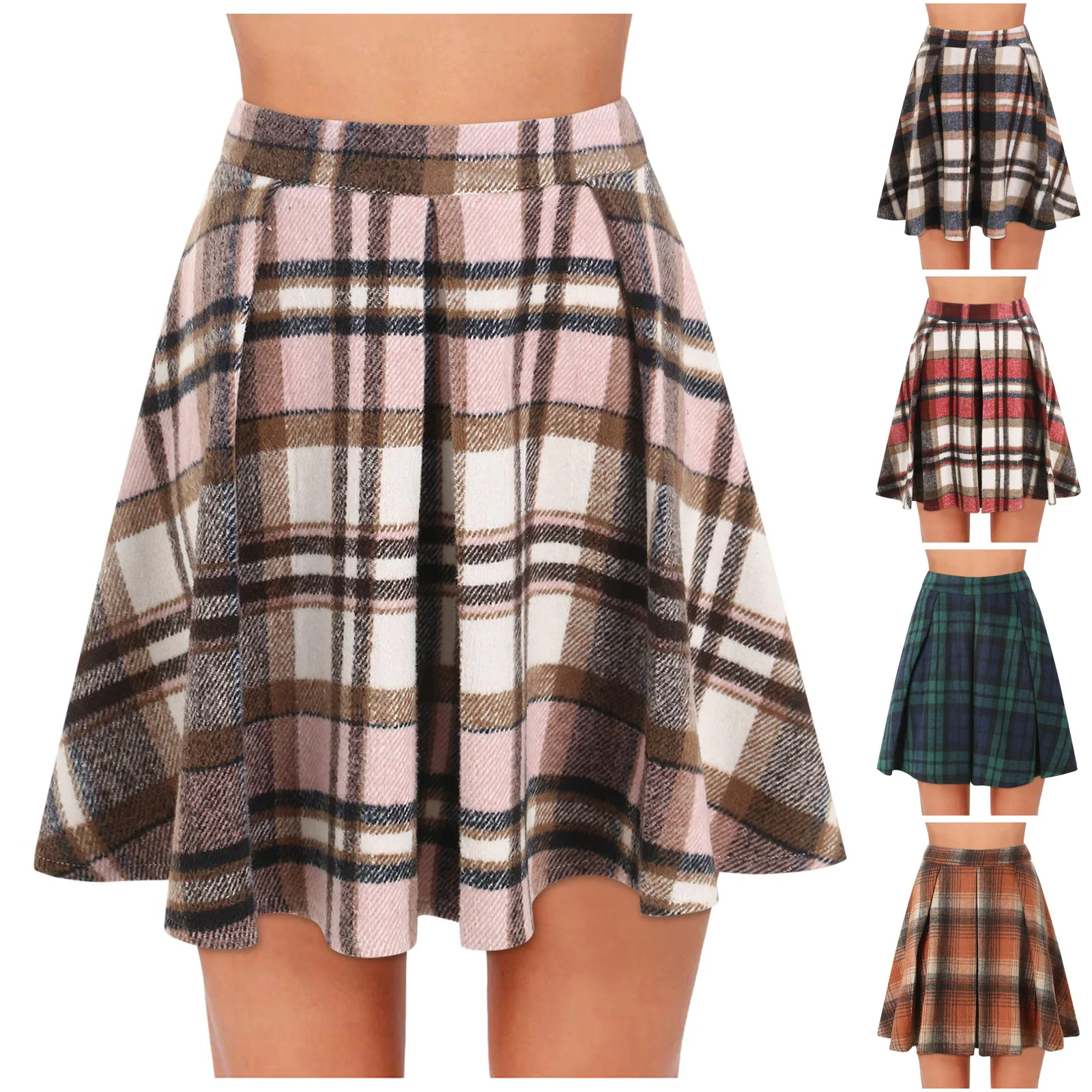 Minigonna scozzese retrò Gonne a pieghe a mezza lunghezza patchwork casual da donna Design a linea A alla moda dalla Cina continentale