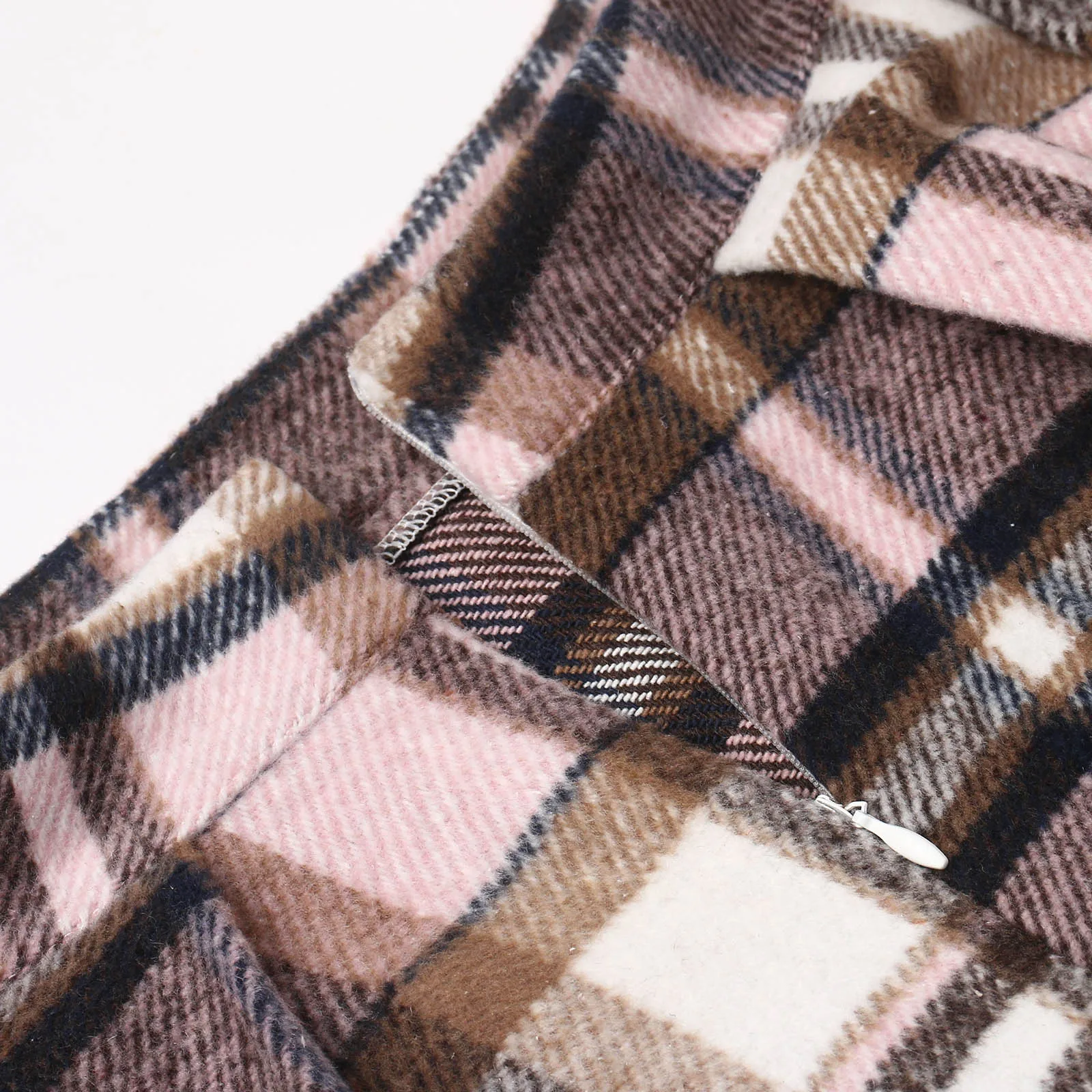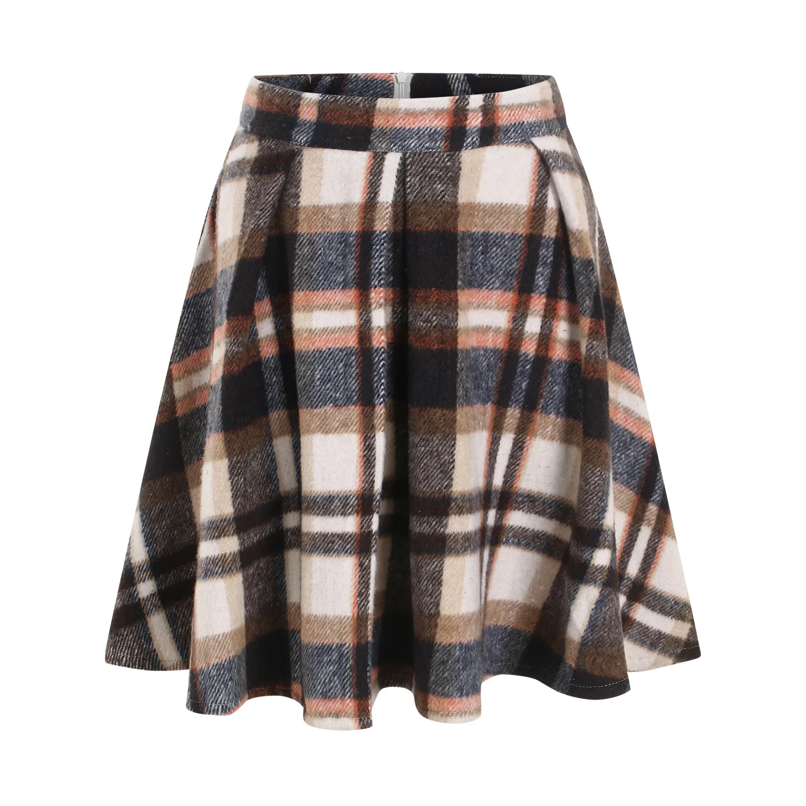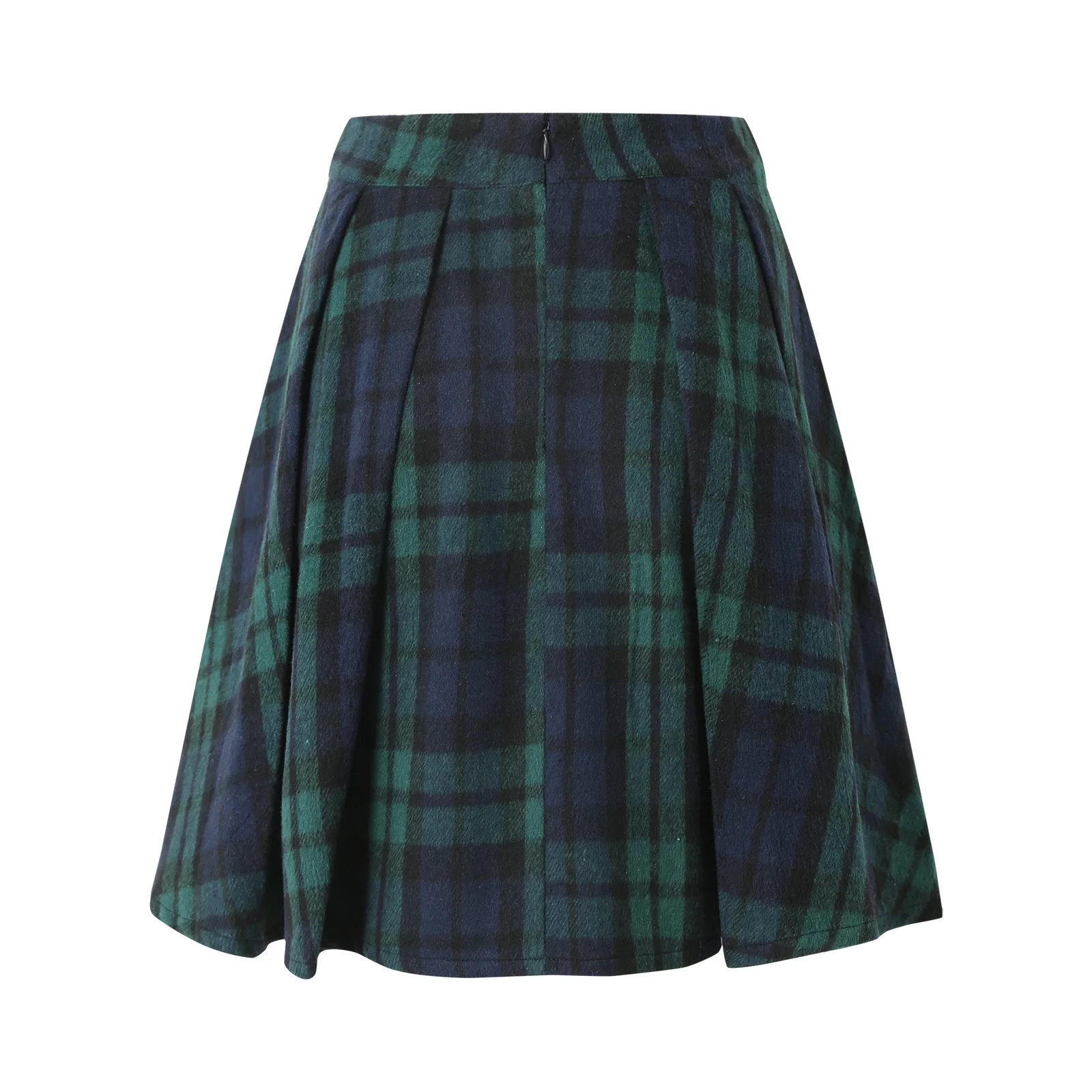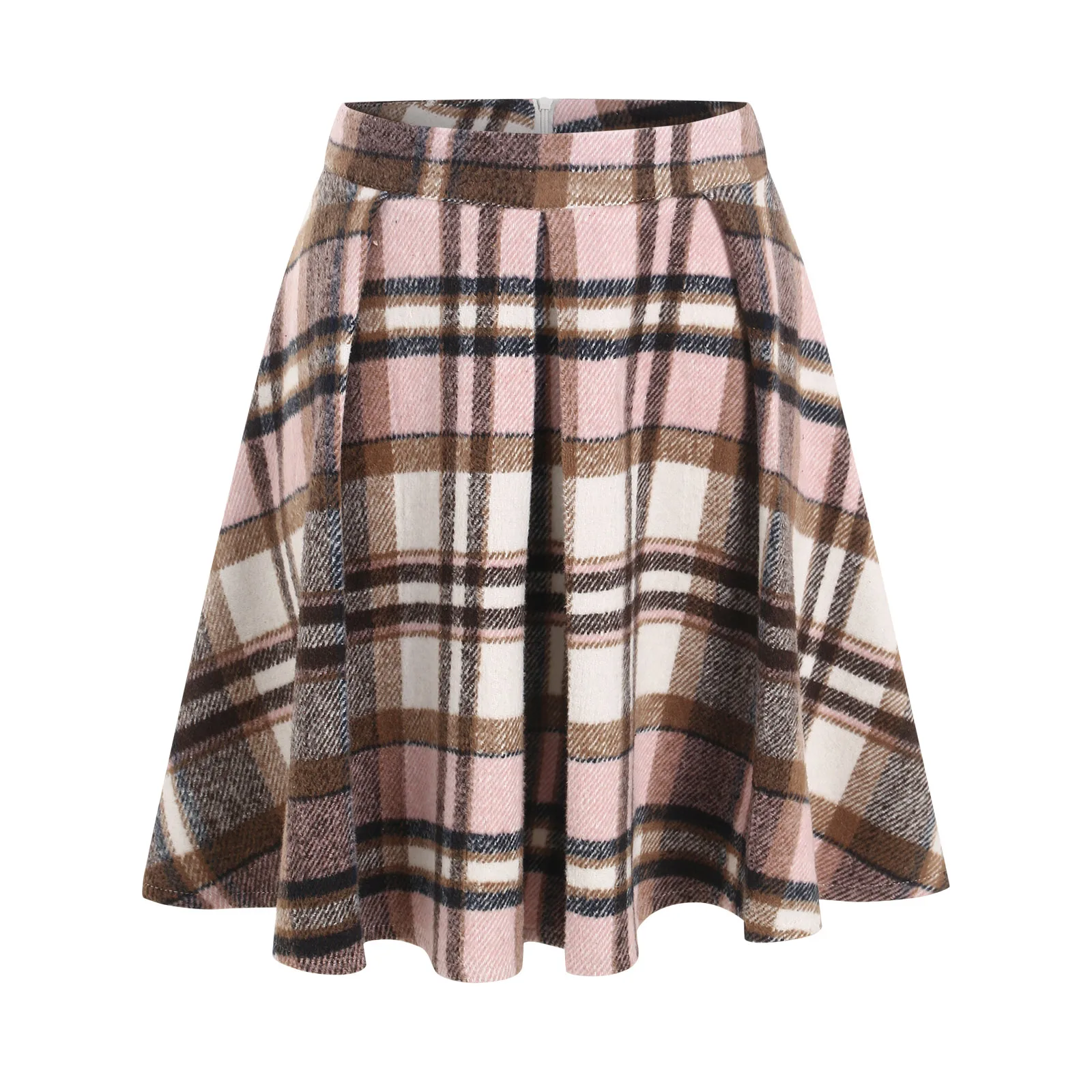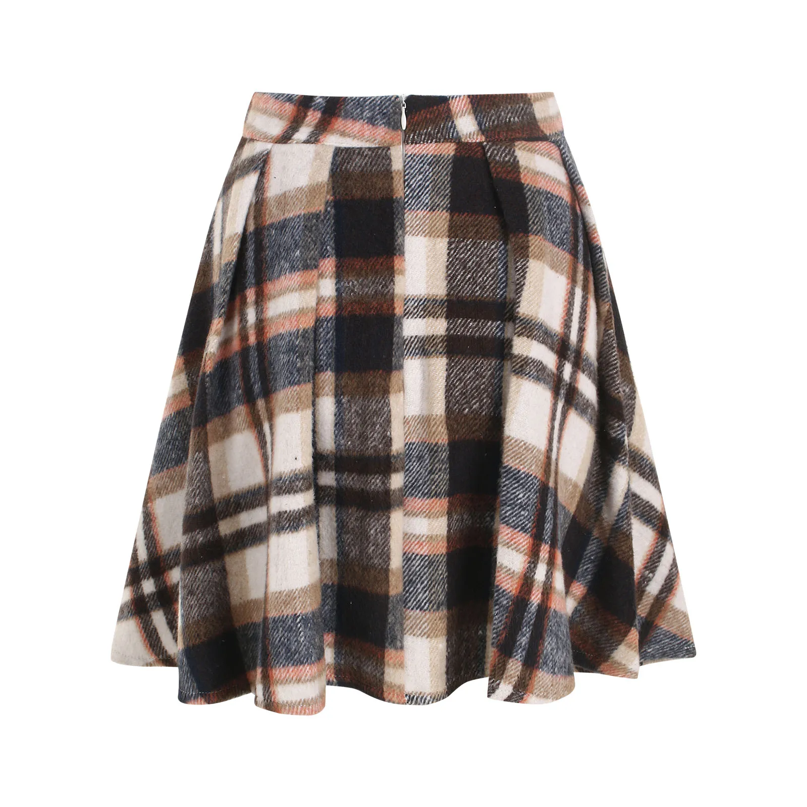 Minigonna scozzese retrò Gonne a pieghe a mezza lunghezza patchwork casual da donna Design a linea A alla moda dalla Cina continentale