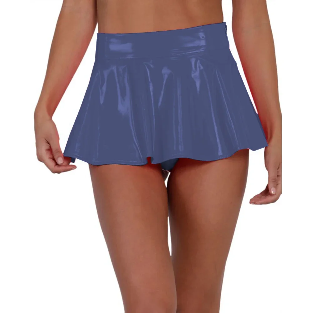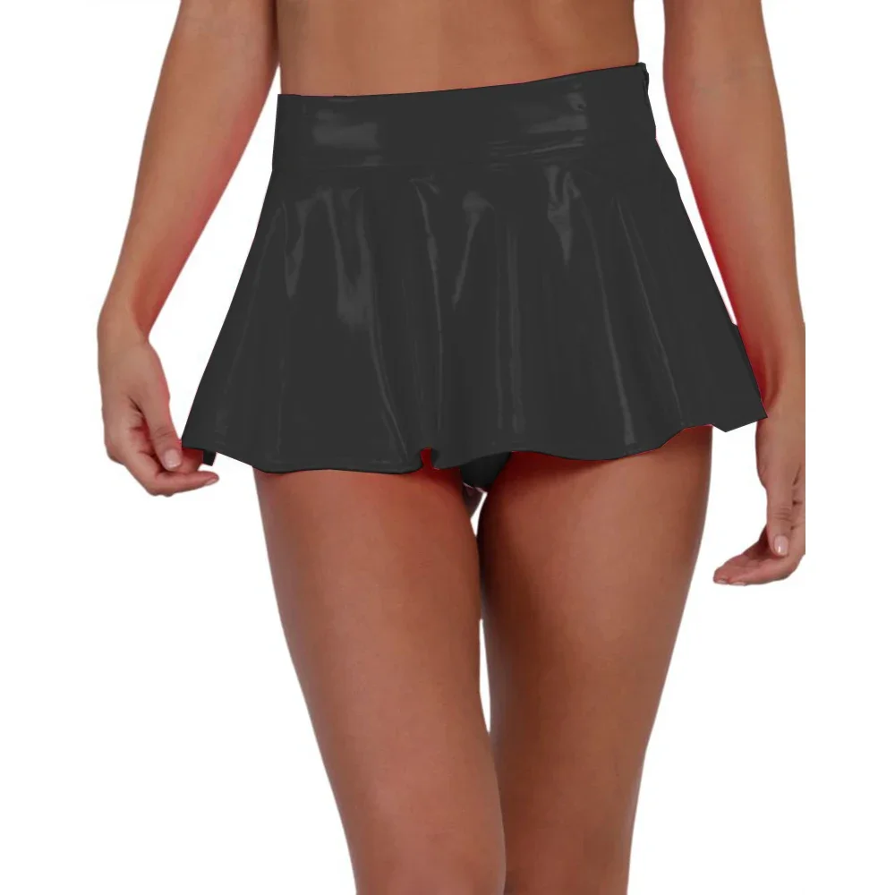 Minigonne da donna taglie forti Ragazza sexy Gonna a pieghe a trapezio Pelle PVC lucida Vita alta Gonne corte Party Pole Dancing Wear 8XL