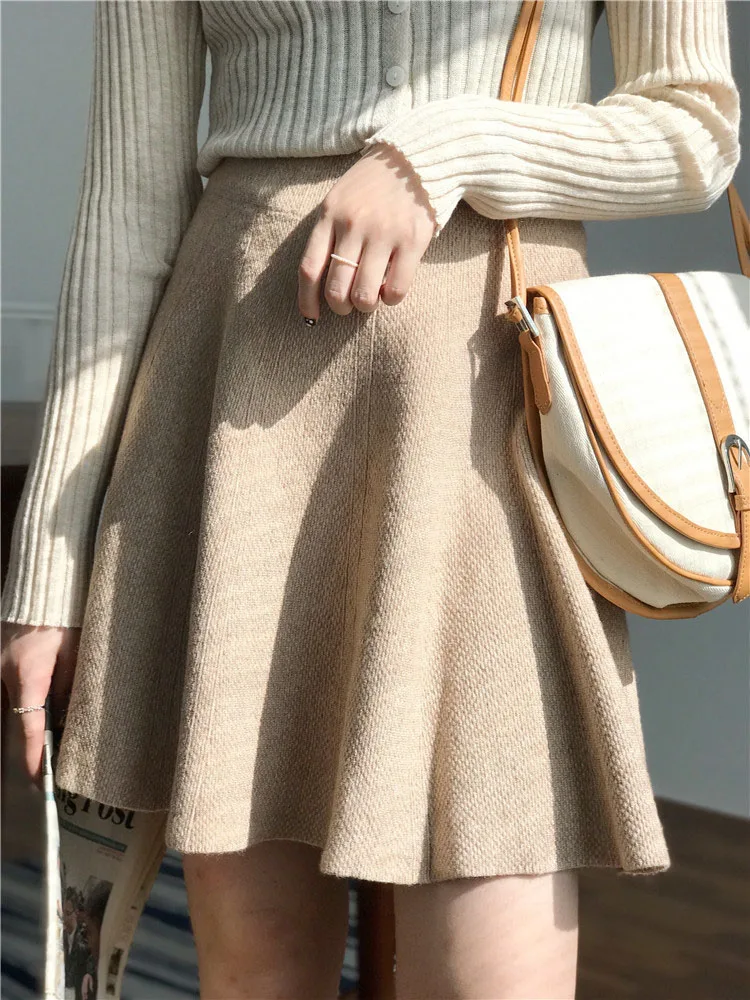 Minigonne lavorate a maglia Gonna a pieghe a vita alta da donna Autunno Inverno Streetwear Solid All Match A Line Gonne 1Minigonne lavorate a maglia Gonna a pieghe a vita alta da donna Autunno Inverno Streetwear Solid All Match A Line Gonne