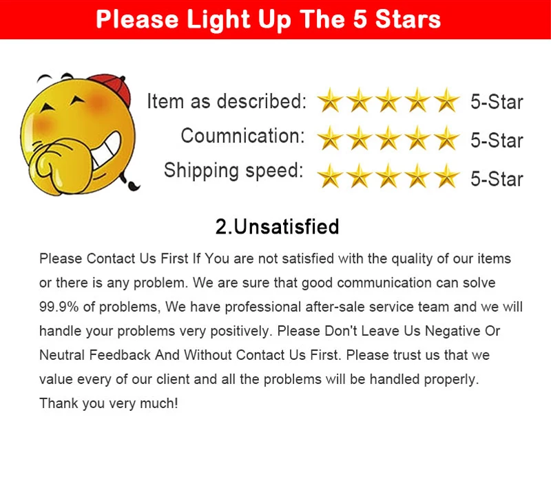 Se sei soddisfatto dei nostri prodotti e servizi, per favore lascia un feedback a cinque stelle. Il Feedback è molto importante!