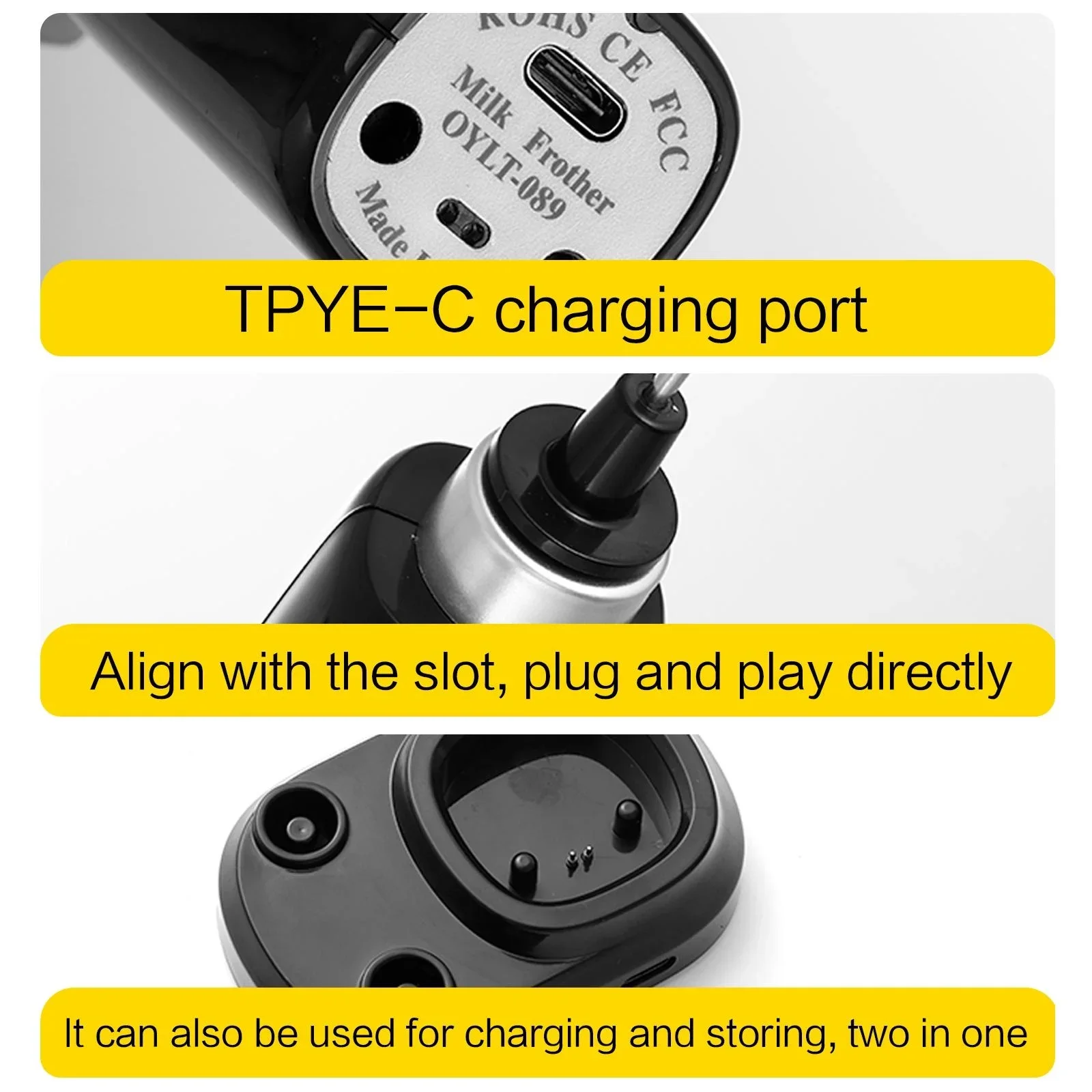 Questo mixer supporta due metodi di ricarica: puoi farlo sulla base per la ricarica verticale o collega direttamente il cavo di ricarica nella parte inferiore del mixer. È flessibile e comodo, ti consentono di caricare qualsiasi momento, ovunque.