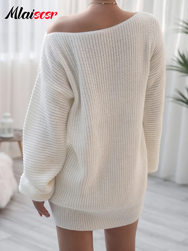 Mini abito elegante Abito longuette a maniche lunghe da donna Autunno e inverno Abiti bianchi casual con scollo a V alla moda in pizzo con ritaglio sfocato