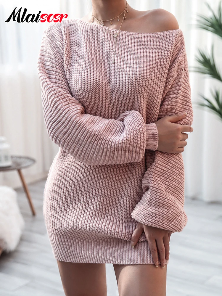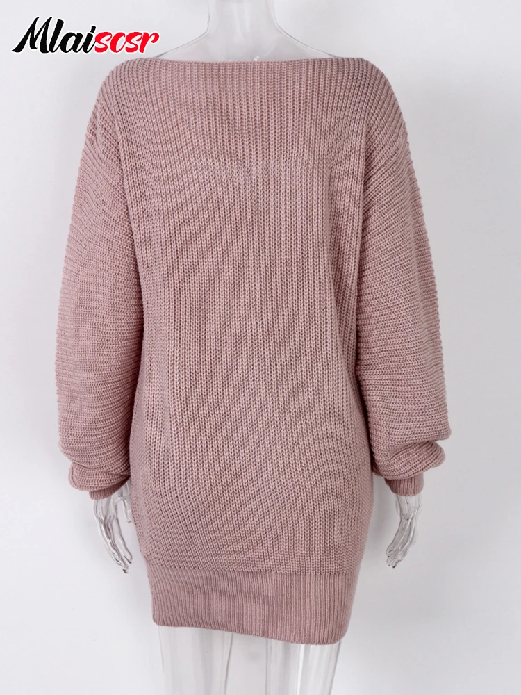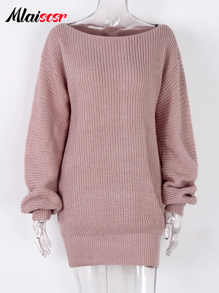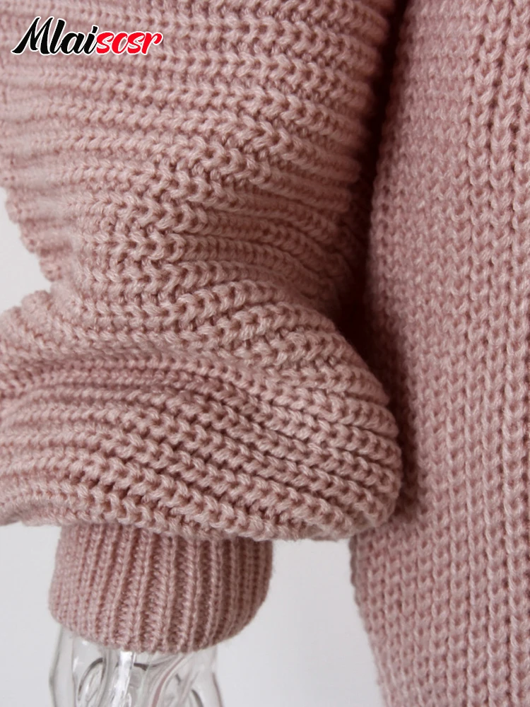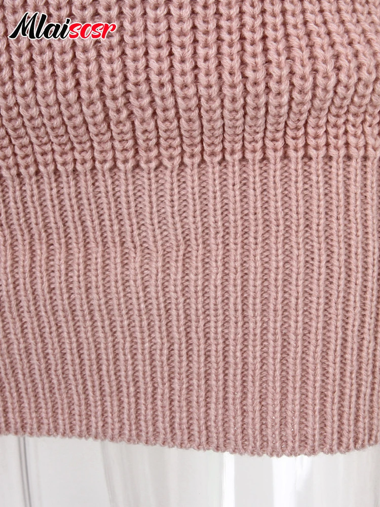 Mlaiscsr Top lavorato a maglia a maniche lunghe con scollo a O da donna Maglione allentato casual Semplice rosa Autunno Inverno Moda Compleanno Abiti corti