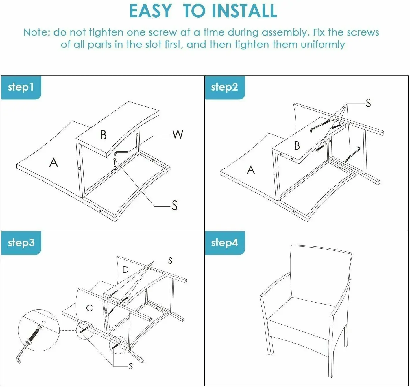 【Assemblaggio rapido】 I set di conversazione nel patio sono davvero un grande pezzo per il valore, viene fornito con strumenti di installazione completi come chiave a brugola, puoi finire il processo di installazione in 30-45 minuti secondo l’immagine nel manuale dell’utente.