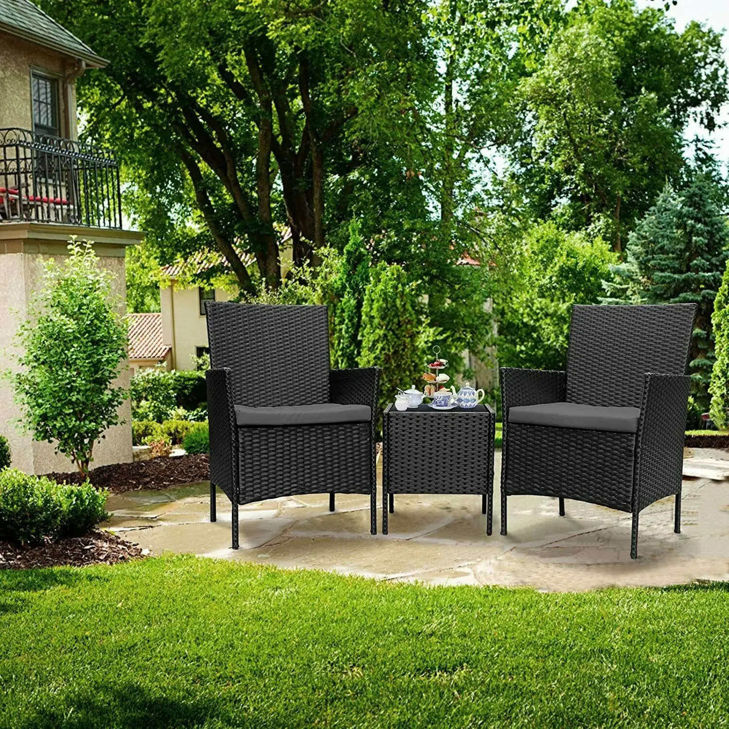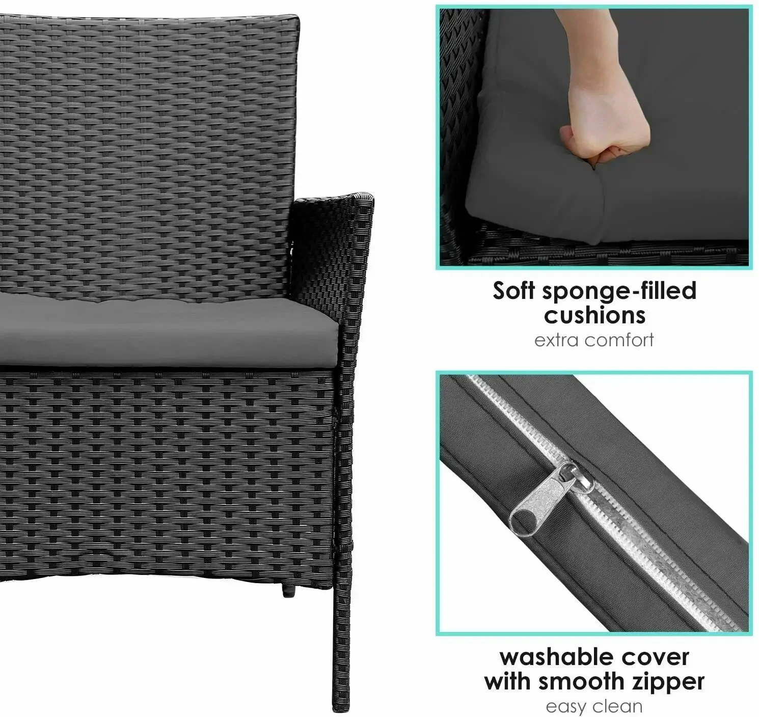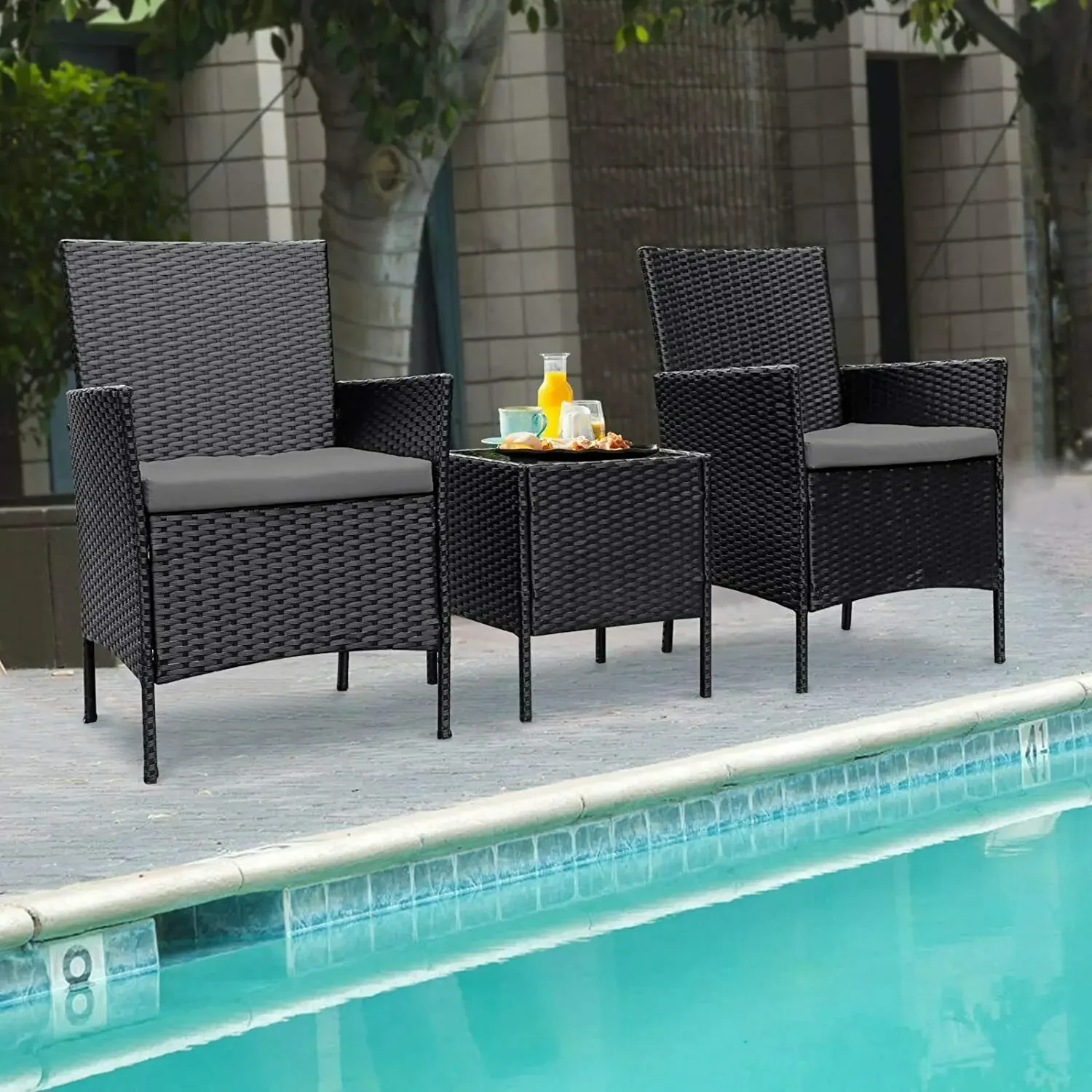 3 pezzi in vimini rattan patio mobili da esterno divano da conversazione set da bistrot set di divani imbottiti da giardino, tavolino + 2 sedie