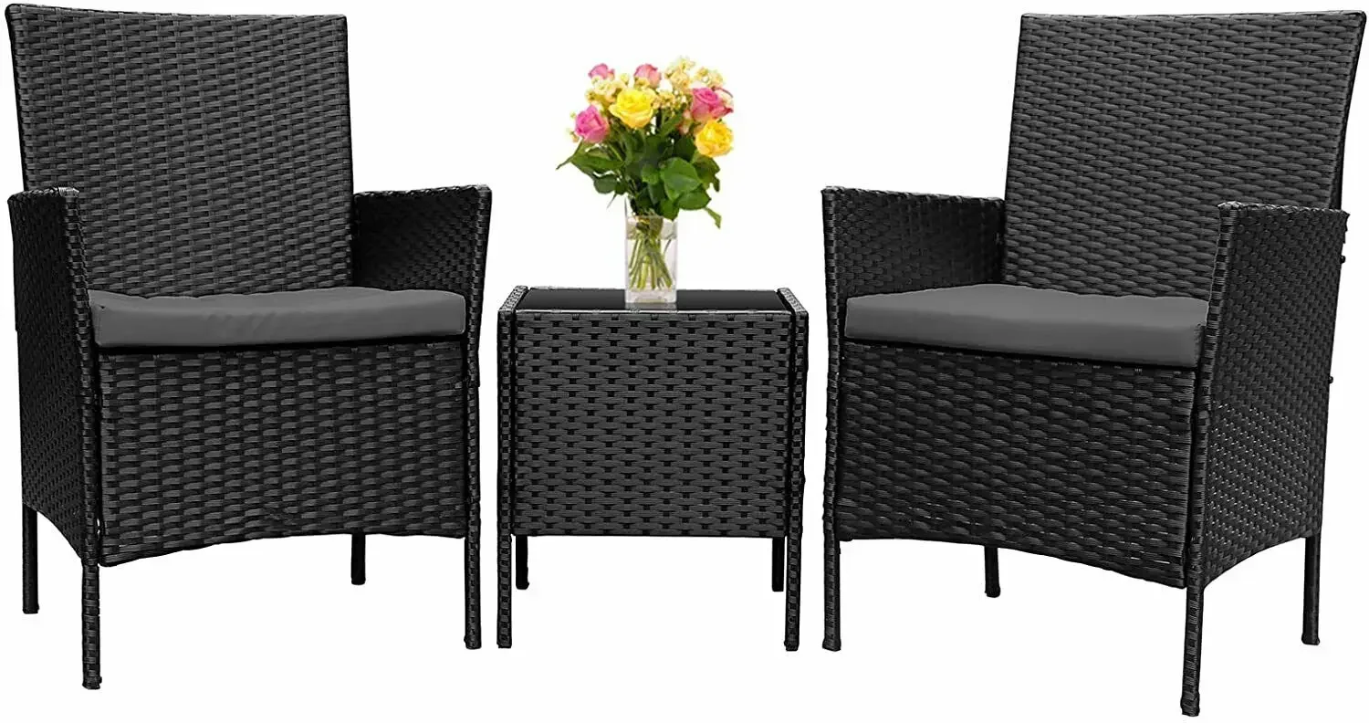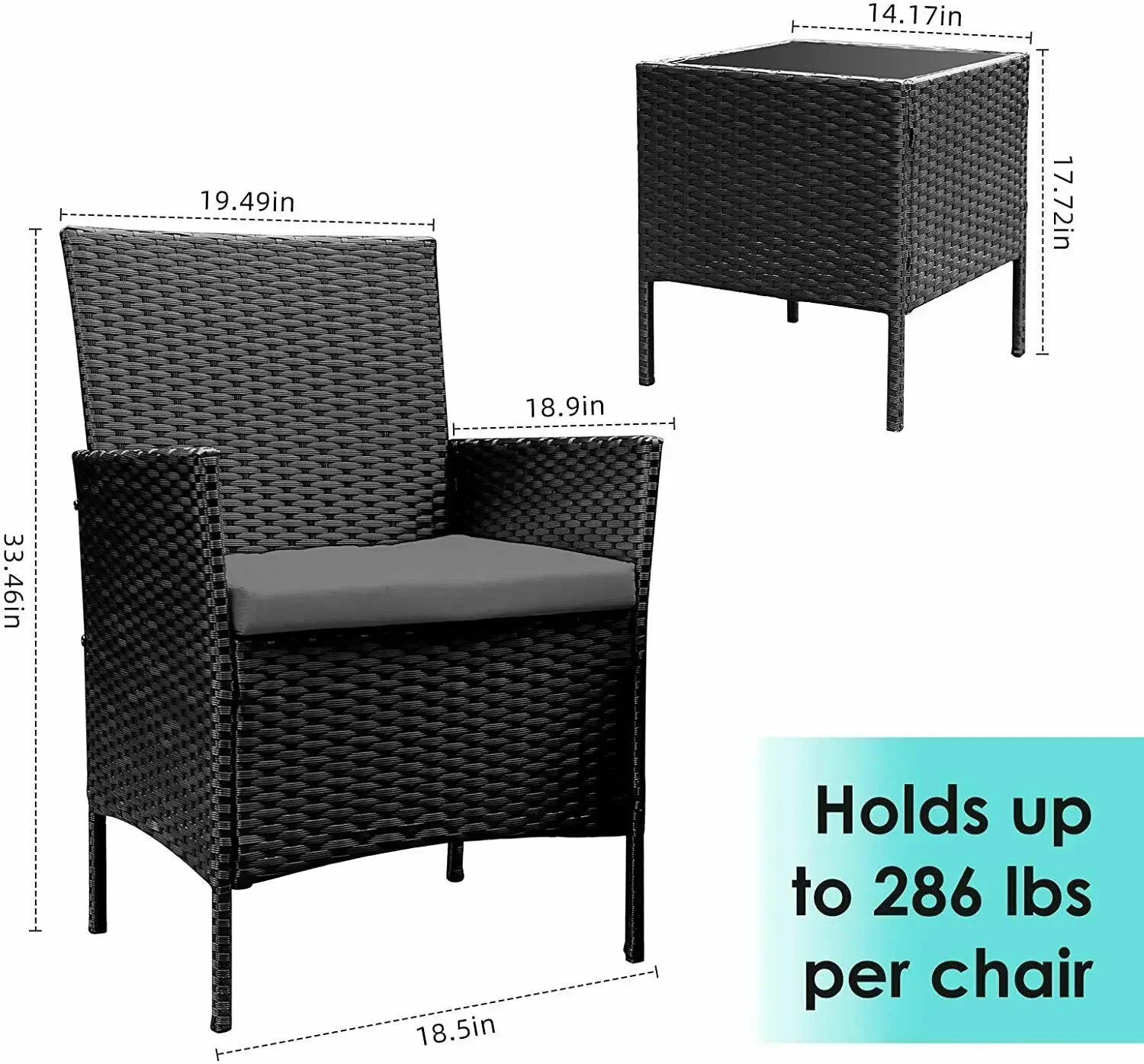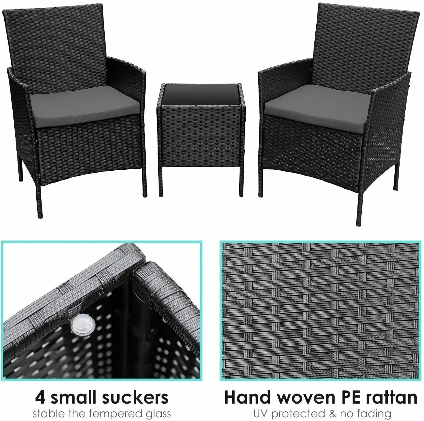 3 pezzi in vimini rattan patio mobili da esterno divano da conversazione set da bistrot set di divani imbottiti da giardino, tavolino + 2 sedie