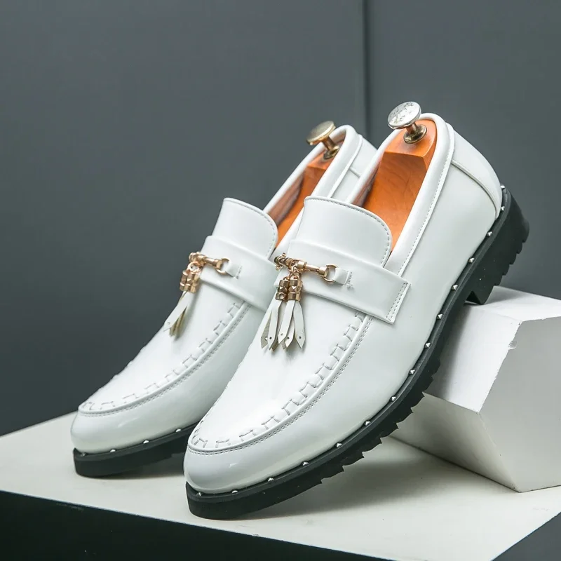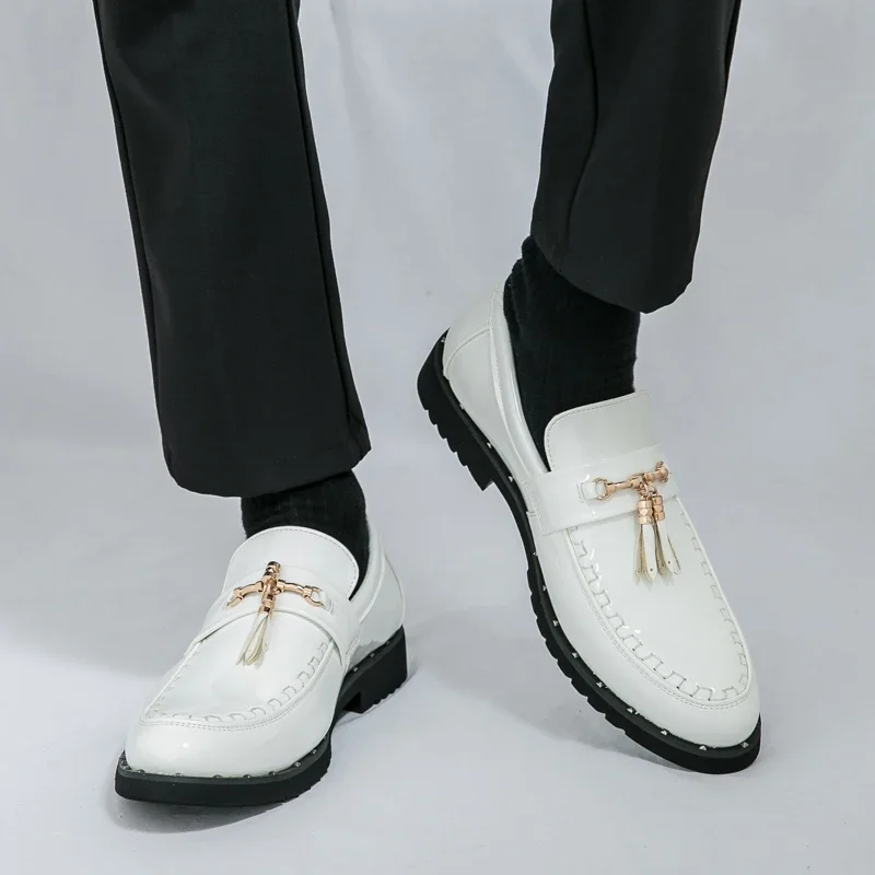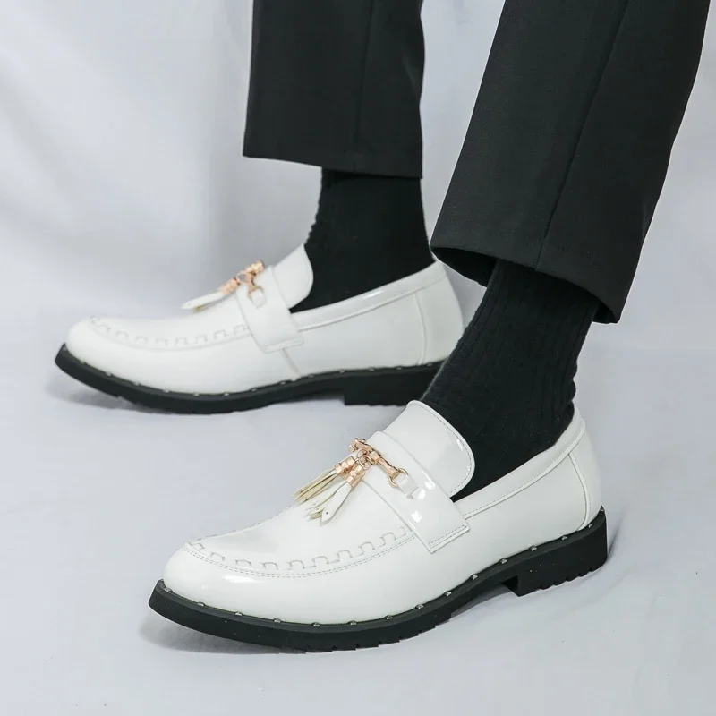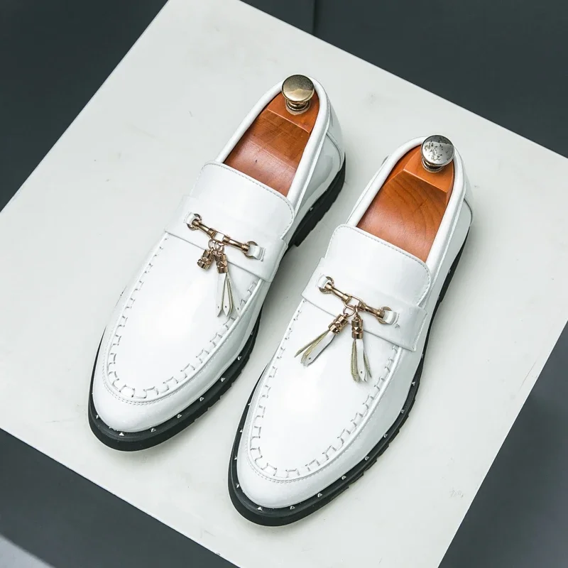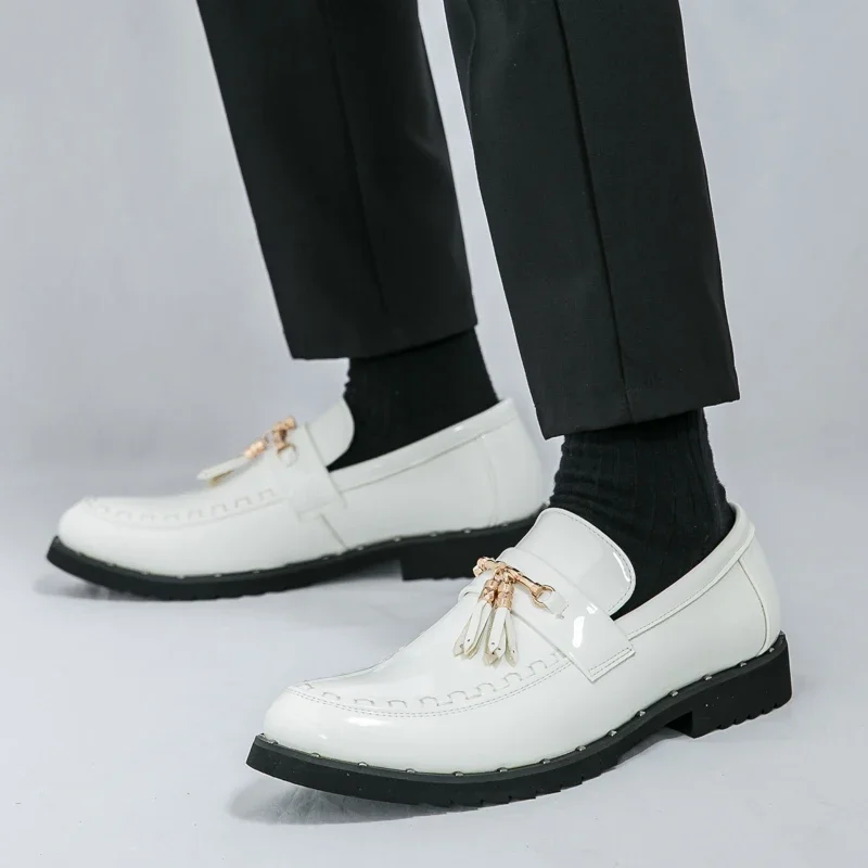 Mocassini con nappe bianche lucide di alta qualità Scarpe da lavoro Mocassino formale Suola morbida Comode scarpe da sposa popolari per testimoni dello sposo 1Mocassini con nappe bianche lucide di alta qualità Scarpe da lavoro Mocassino formale Suola morbida Comode scarpe da sposa popolari per testimoni dello sposo