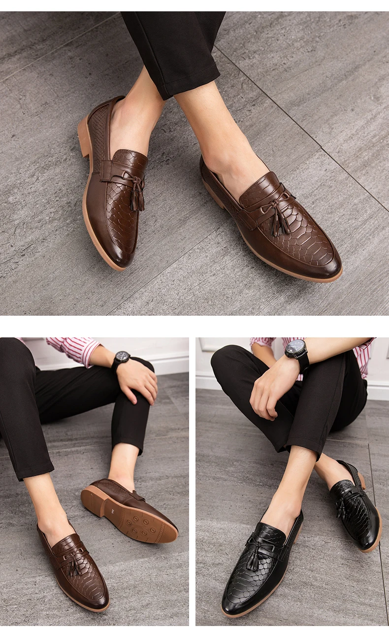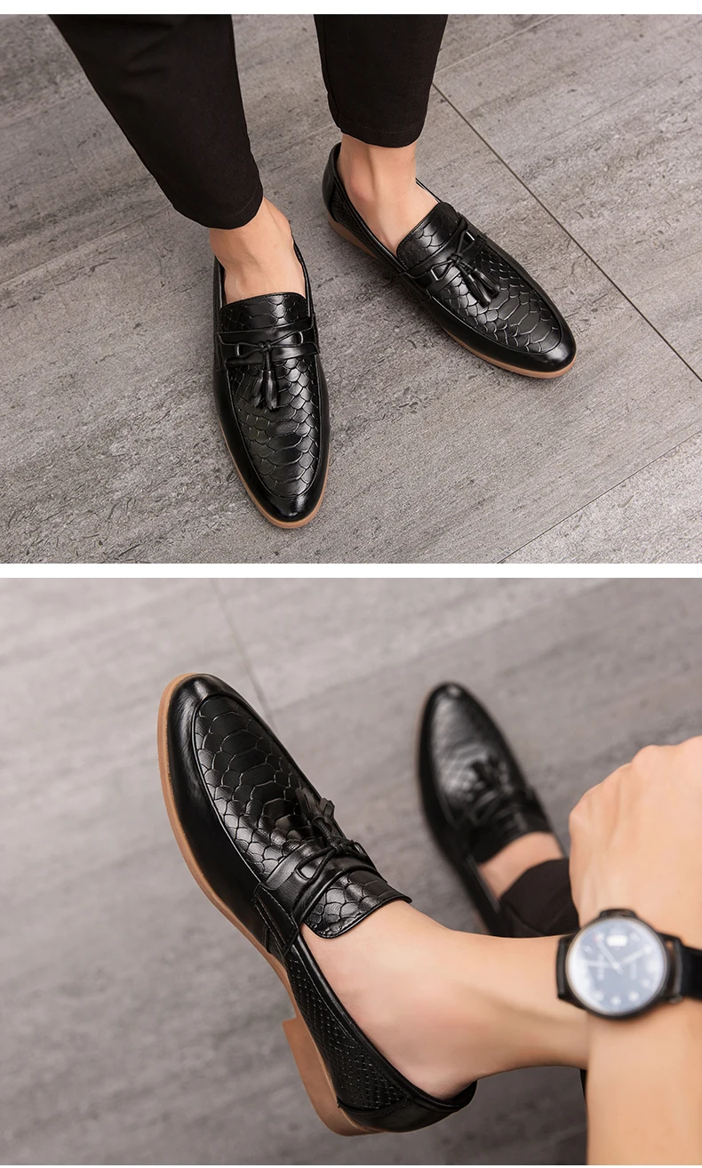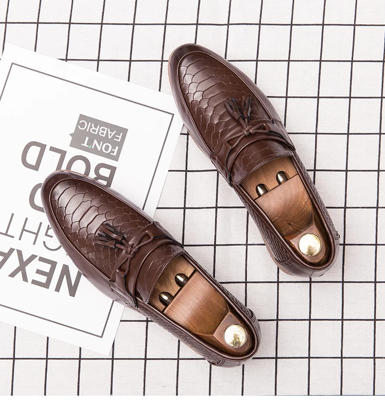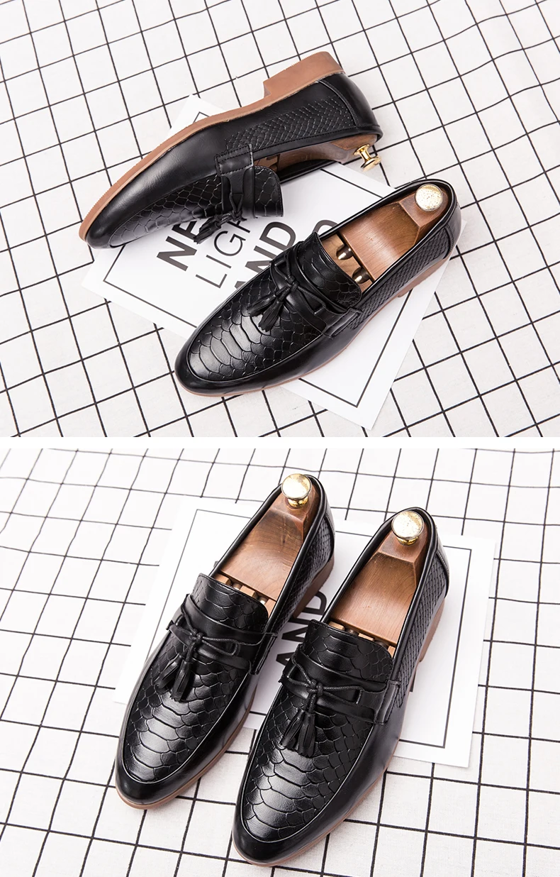 Mocassini di fagioli con nappe uomo new British business trend stampa coccodrillo lazy man slip-on scarpe casual in pelle a punta da uomo
