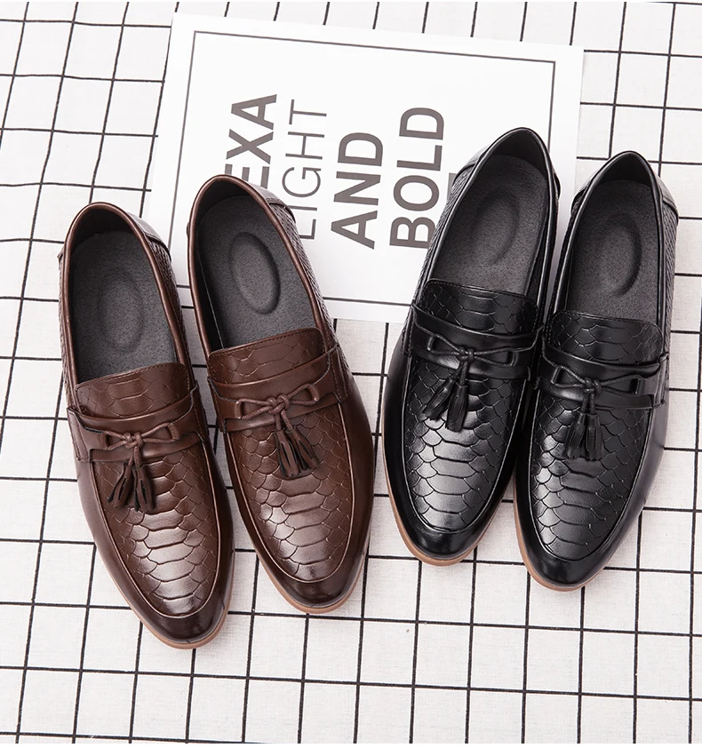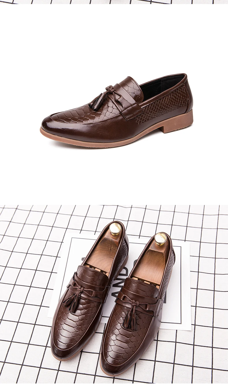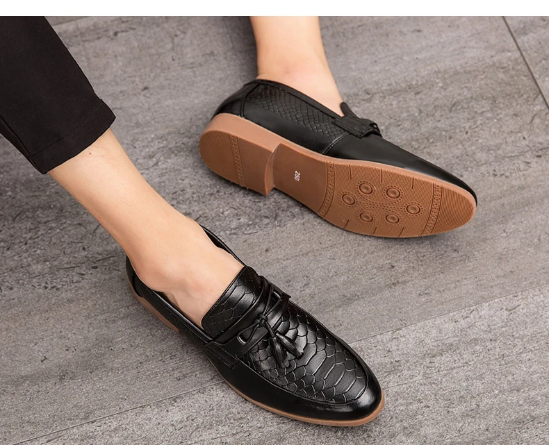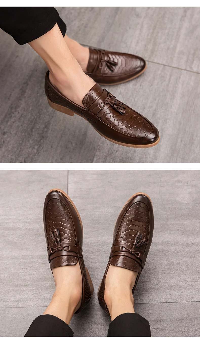 Mocassini di fagioli con nappe uomo new British business trend stampa coccodrillo lazy man slip-on scarpe casual in pelle a punta da uomo