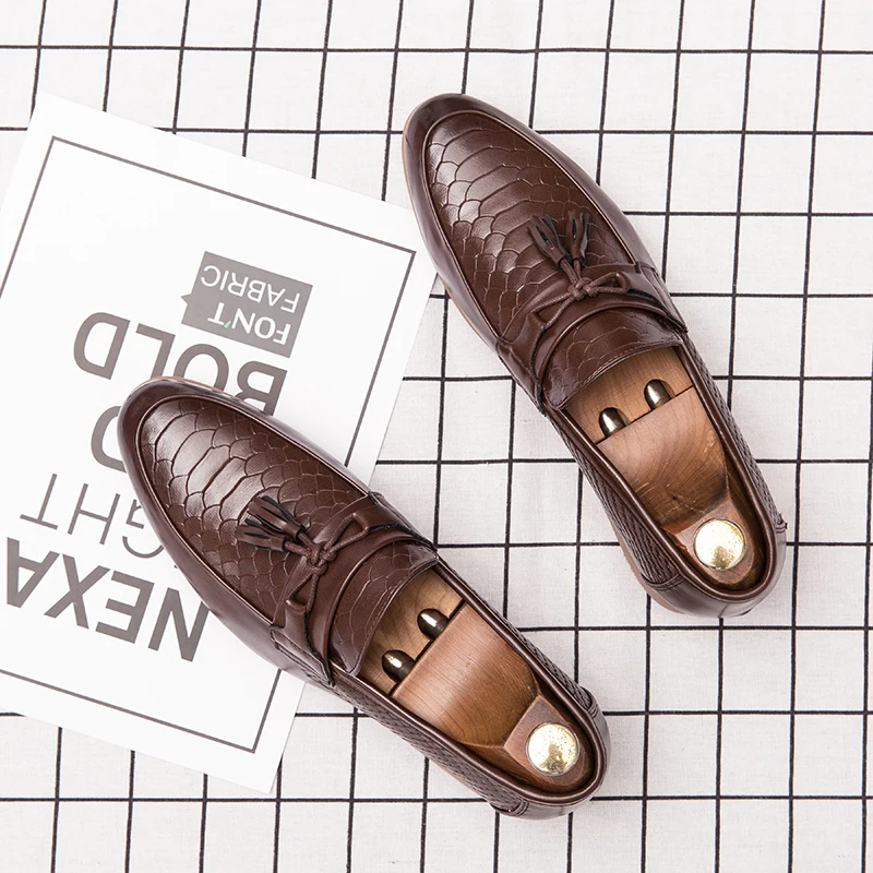 Mocassini di fagioli con nappe uomo new British business trend stampa coccodrillo lazy man slip-on scarpe casual in pelle a punta da uomo