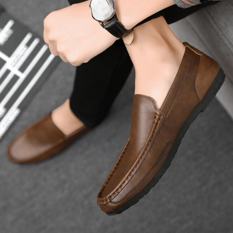 Mocassini da uomo in pelle PU antiscivolo appartamenti da passeggio traspiranti slip on da esterno scarpe casual per scarpe da ginnastica da guida per ufficio da lavoro maschile2