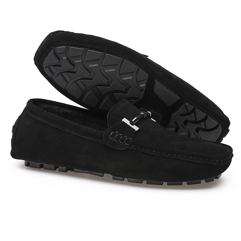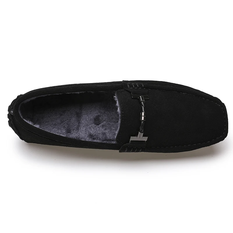 Mocassini scarpe da uomo scarpe Slip-On Casual mocassini da uomo pelliccia scarpe invernali calde per uomo mocassini vera pelle scamosciata di mucca piatto di lusso