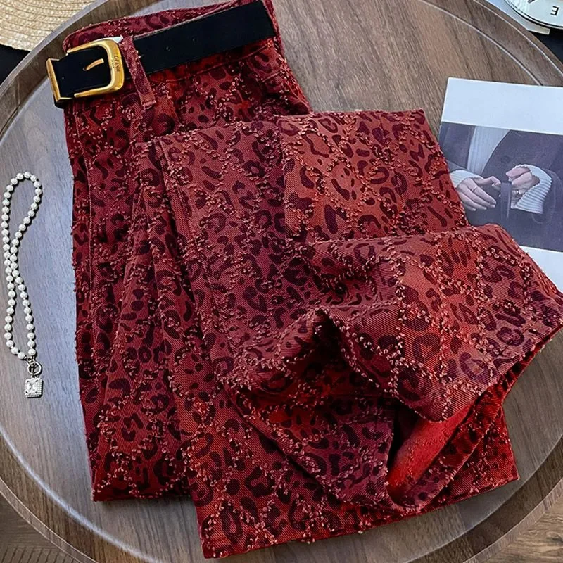 Moda American High Street Leopard Jeans Donna 2025 Nuovo Autunno Inverno Pantaloni a gamba larga in denim dritto Pantaloni a vita alta
