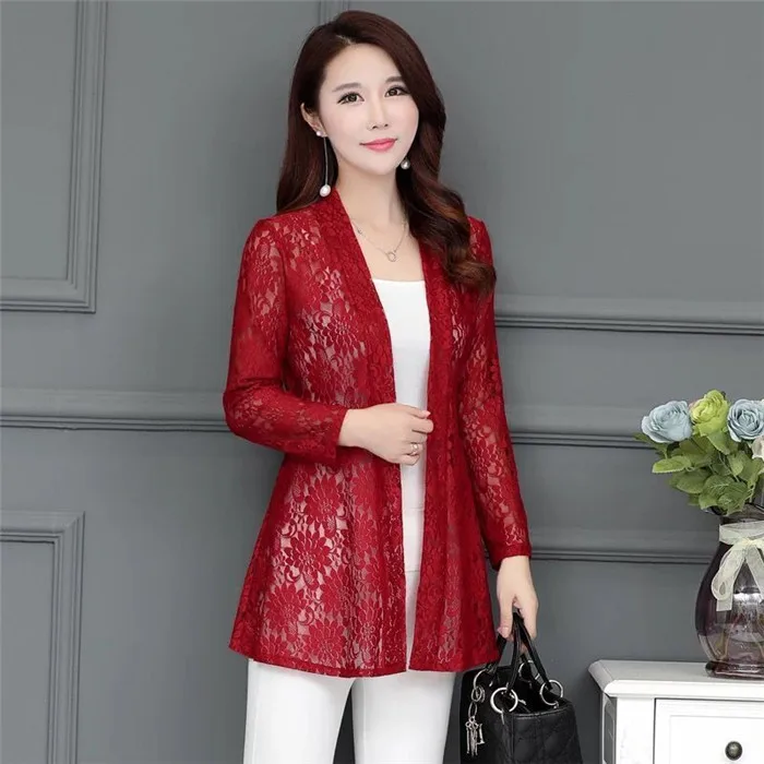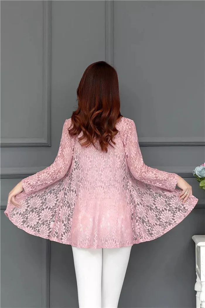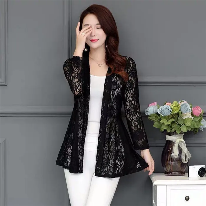 Moda Giacca in pizzo Scialle Donna Nuova estate Protezione solare Abbigliamento Cappotto autunnale da donna di mezza età Capispalla Cardigan sottile