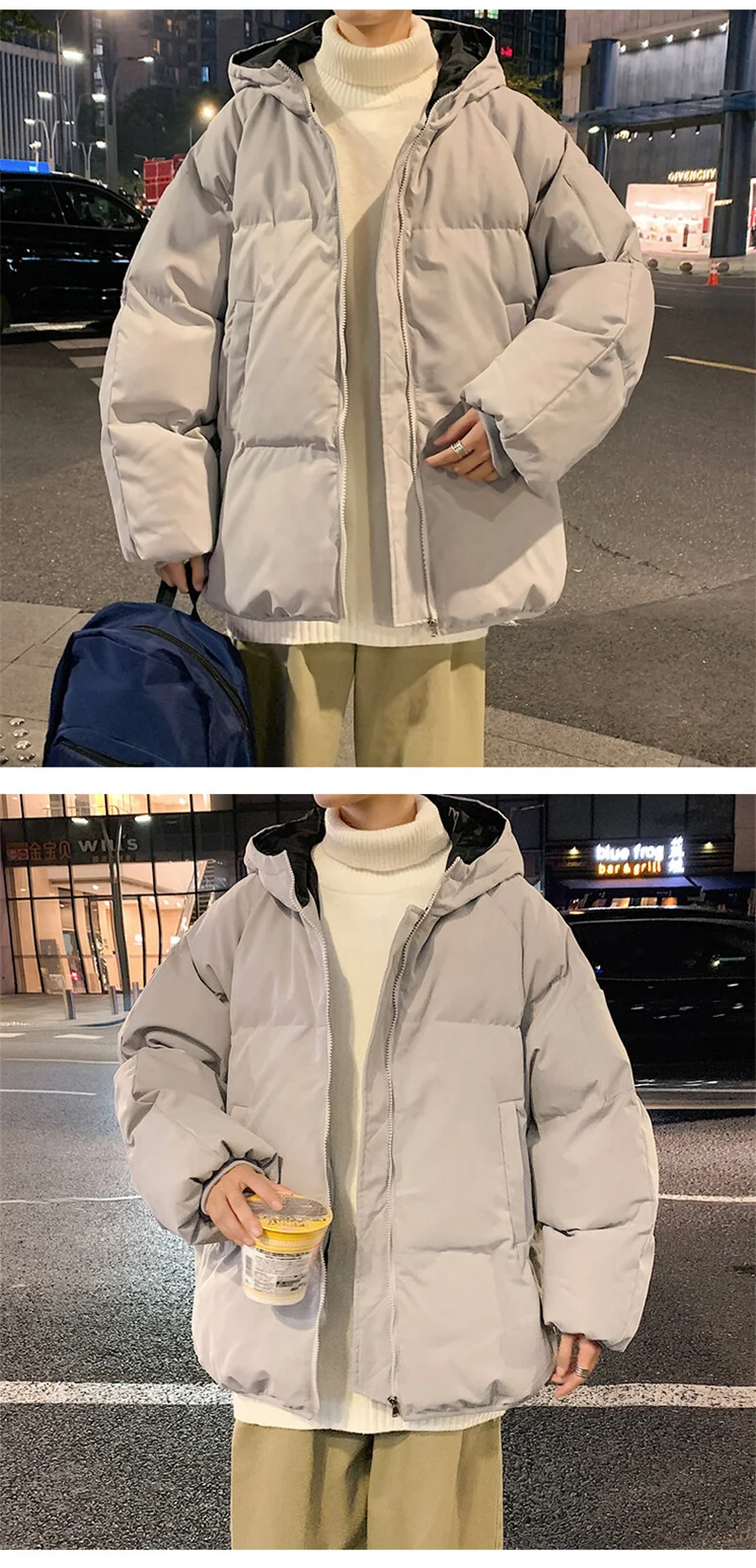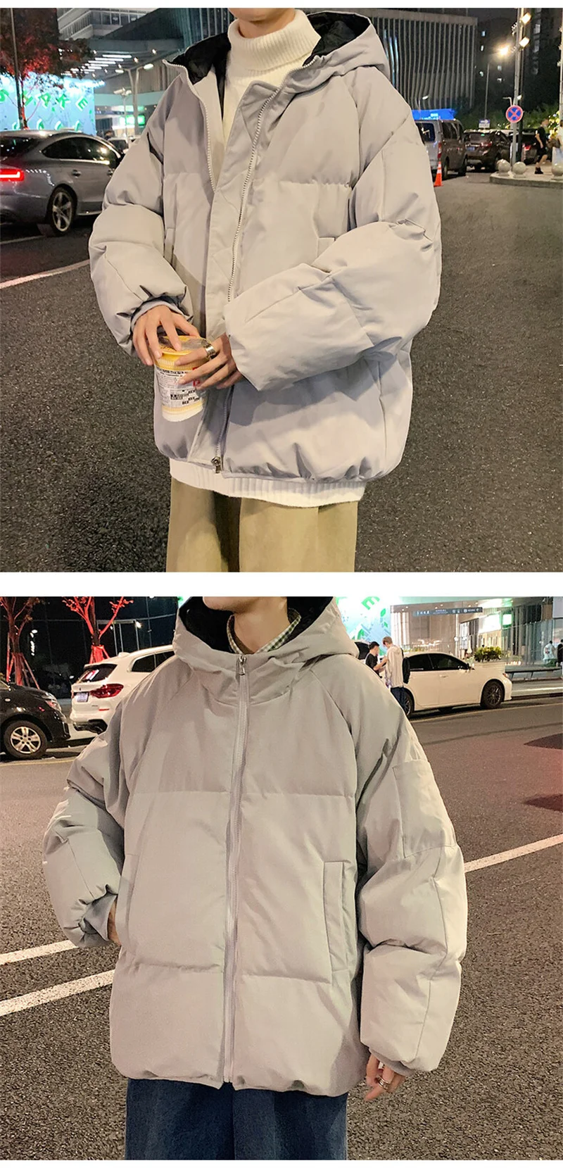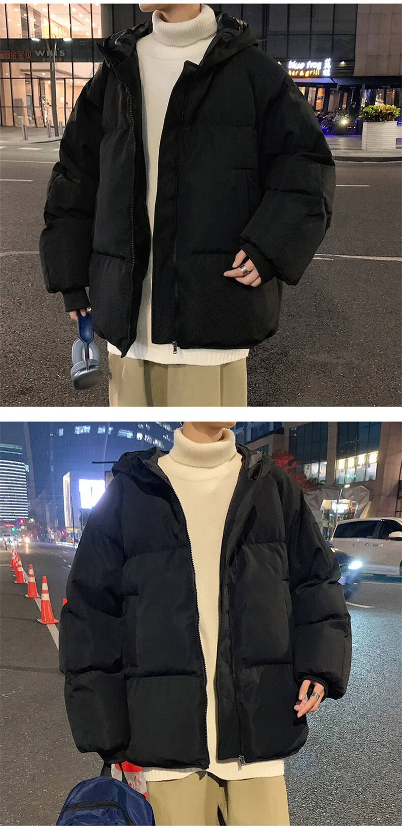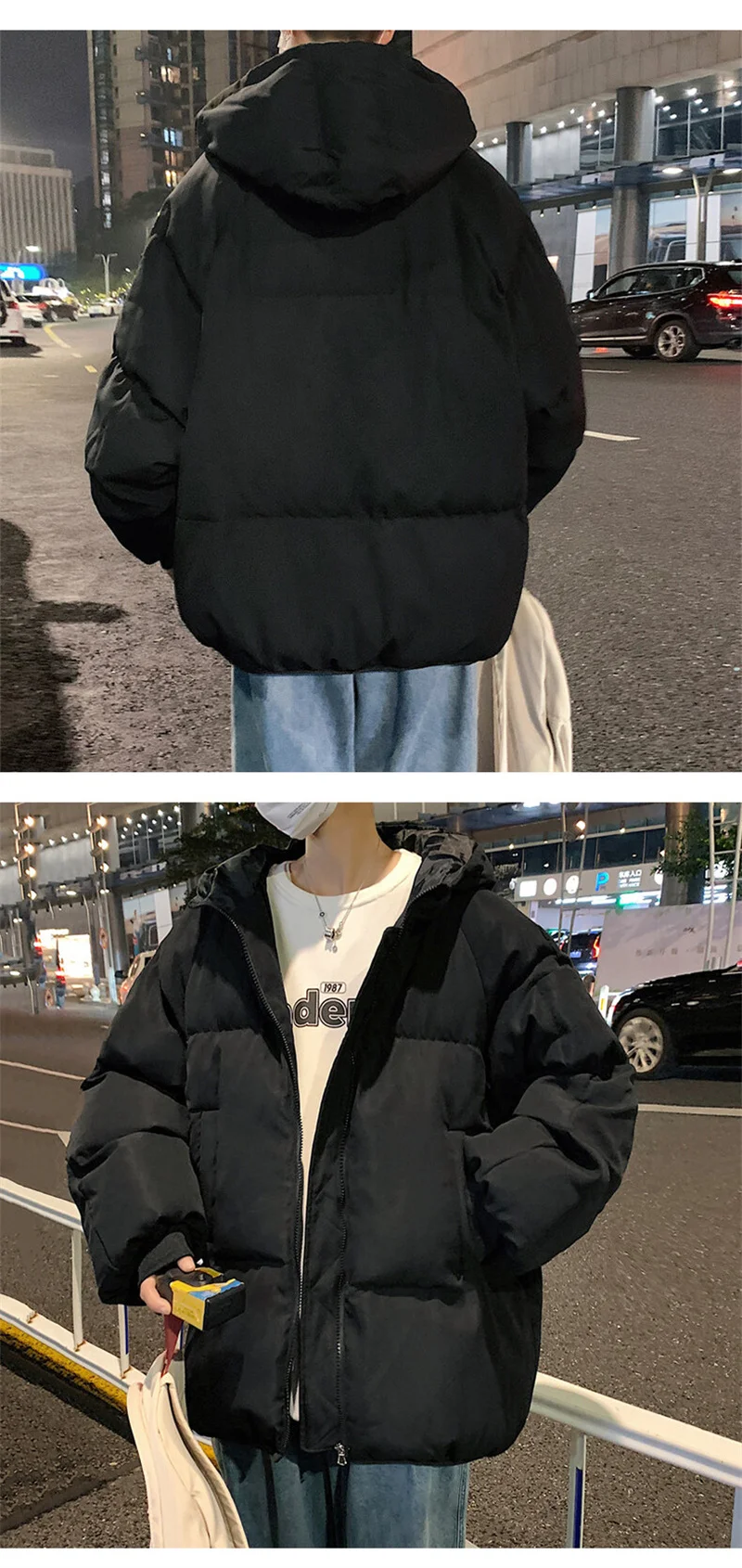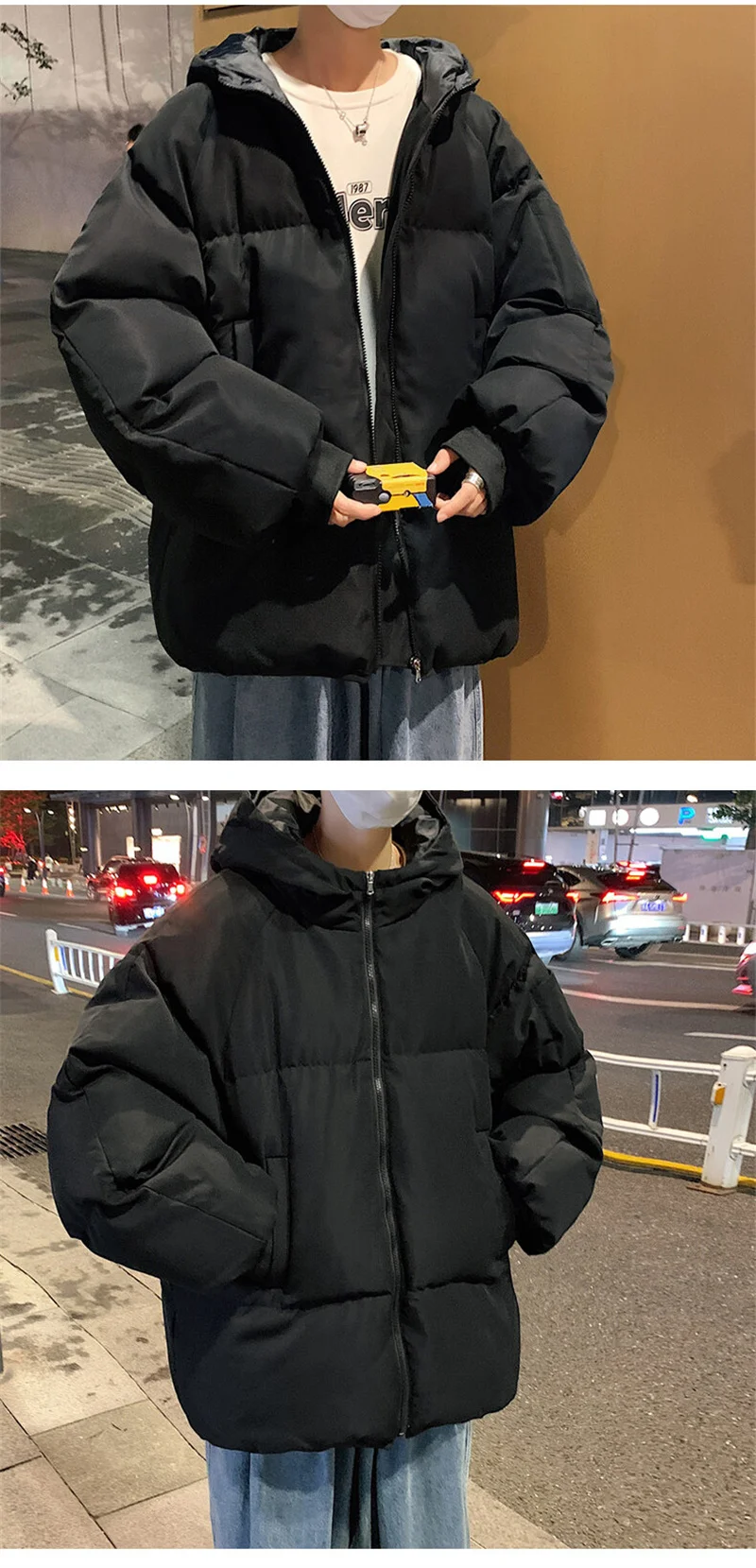 Moda Inverno Pane Giacca per Gli Uomini Caldo Maschile Parka di Grandi Dimensioni Solido Nero Divertente Cappotto di Cotone da Uomo Oversize Abbigliamento Uomo 2024