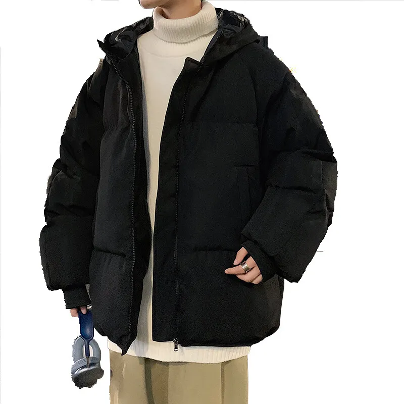 Moda Inverno Pane Giacca per Gli Uomini Caldo Maschile Parka di Grandi Dimensioni Solido Nero Divertente Cappotto di Cotone da Uomo Oversize Abbigliamento Uomo 2024