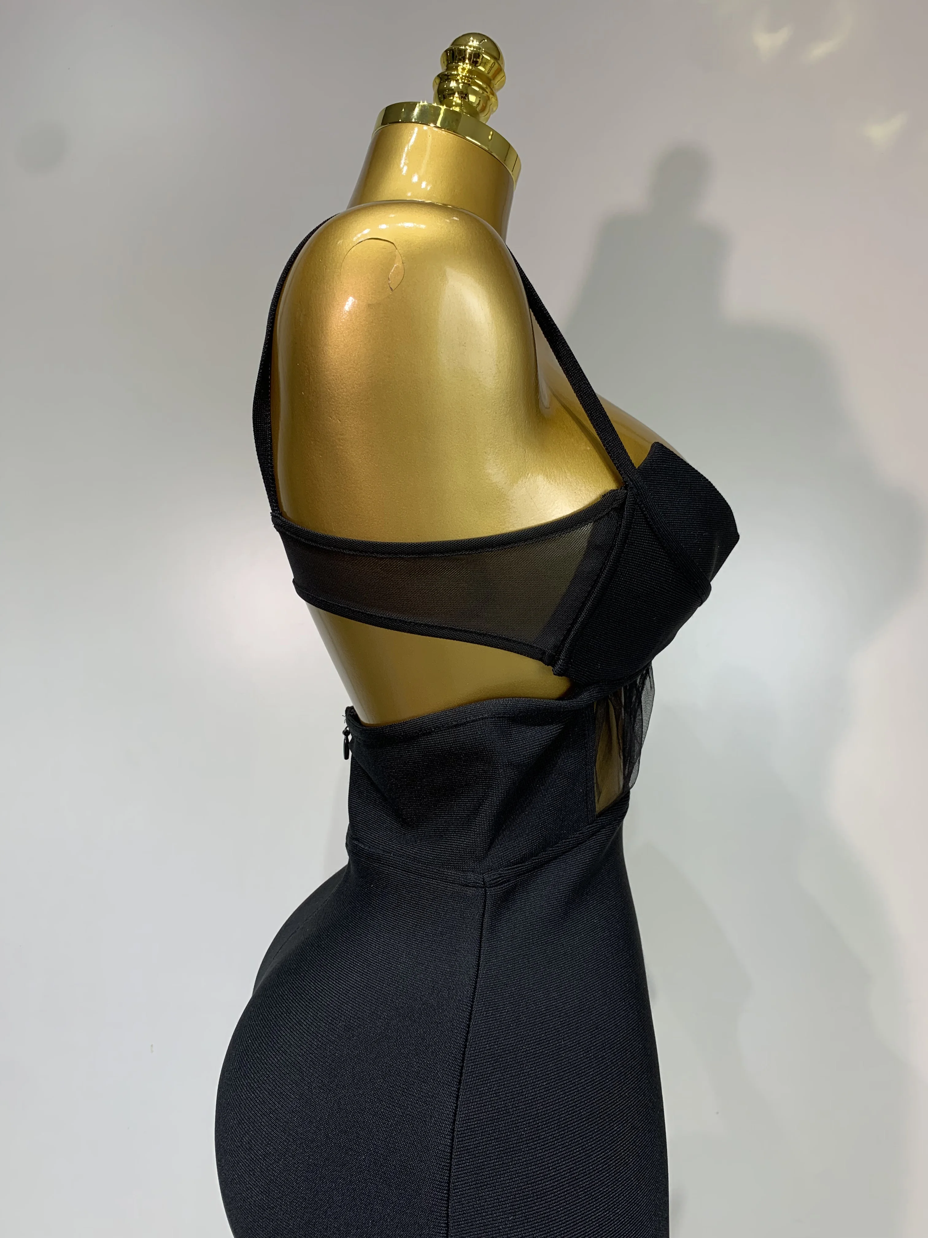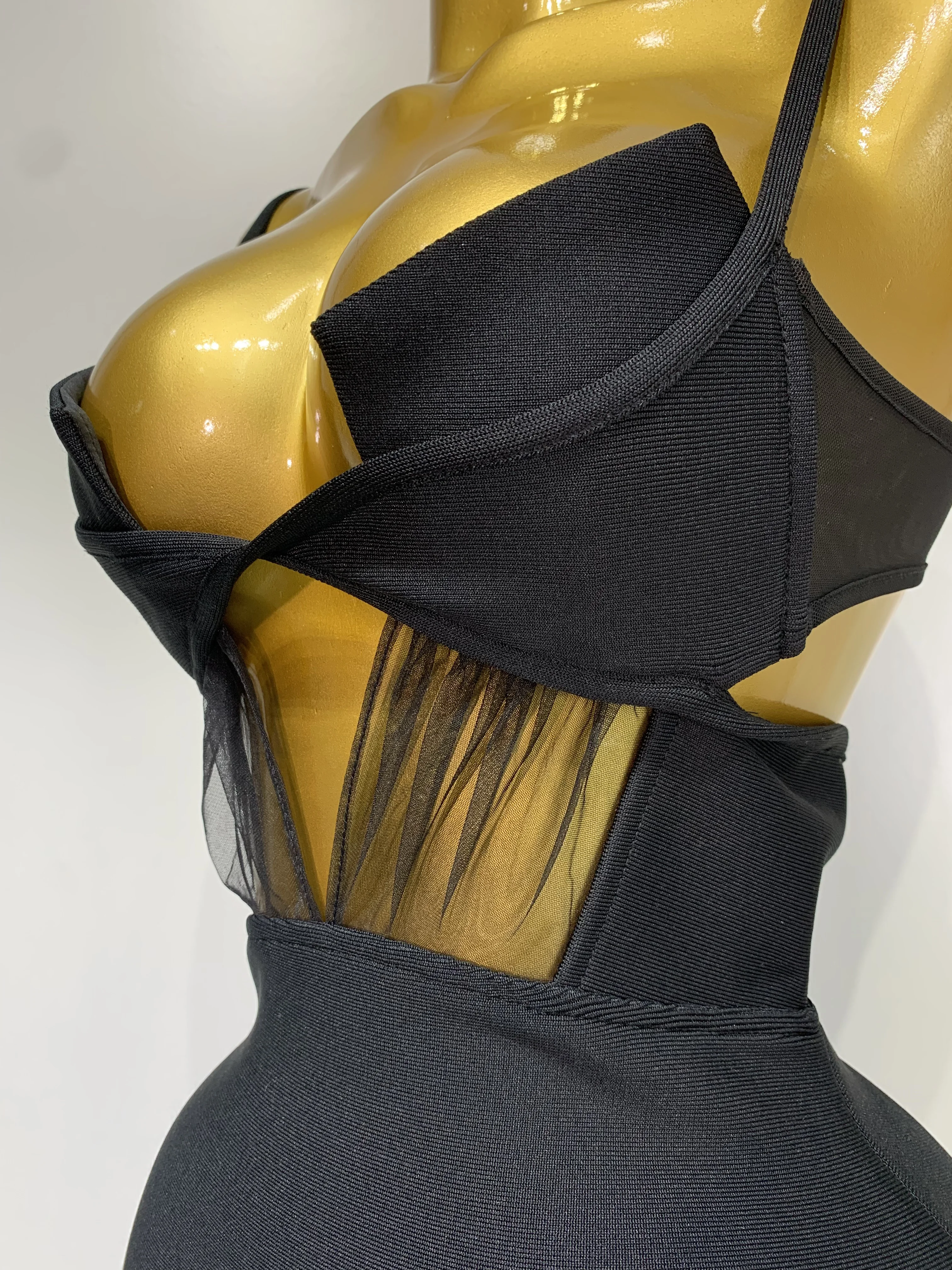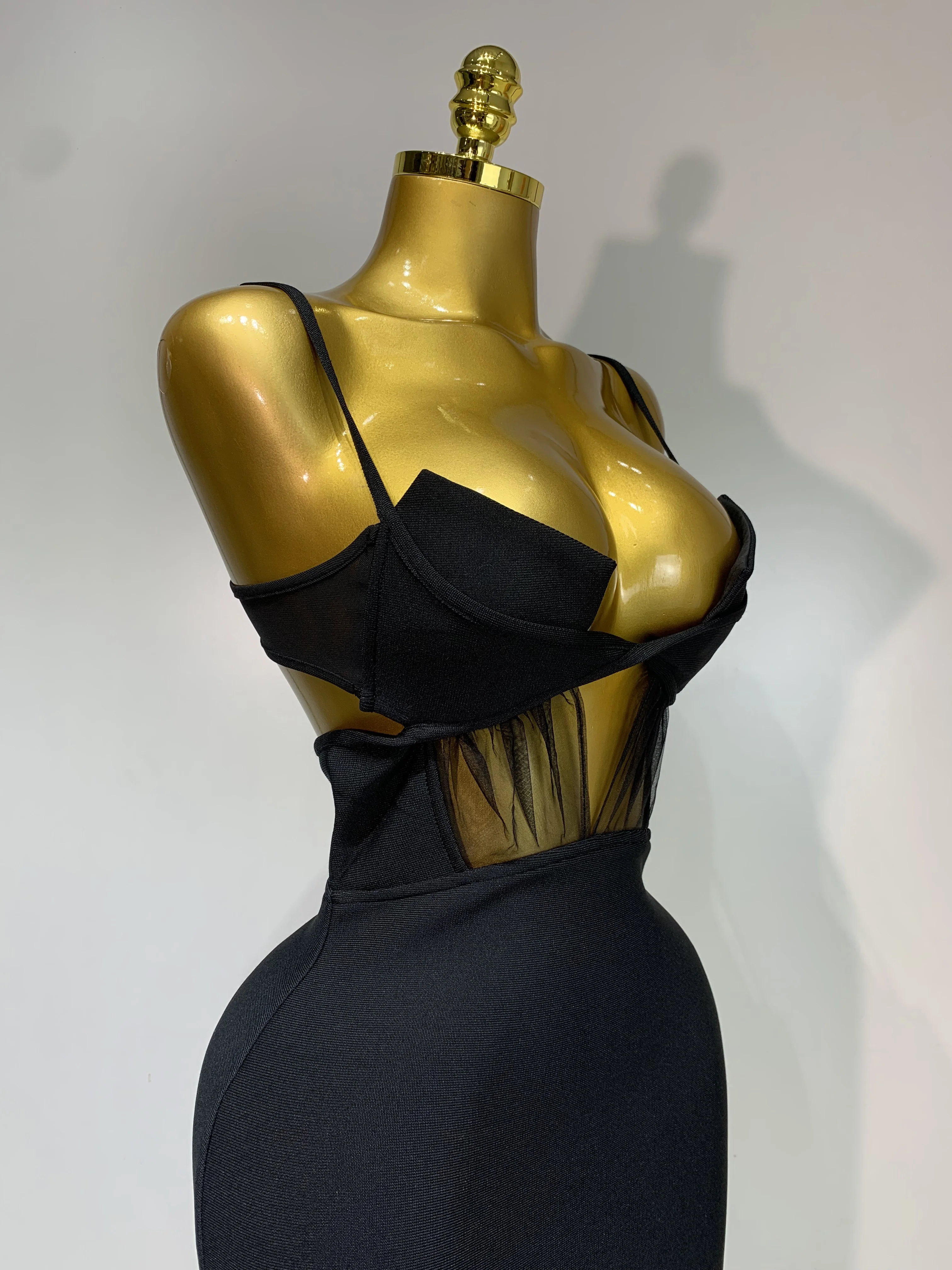 Moda nero con cinturino per spaghetti maxi abito lungo dalla fasciatura in rete ritagliata elegante celebrità aderente abiti da sera per feste di compleanno