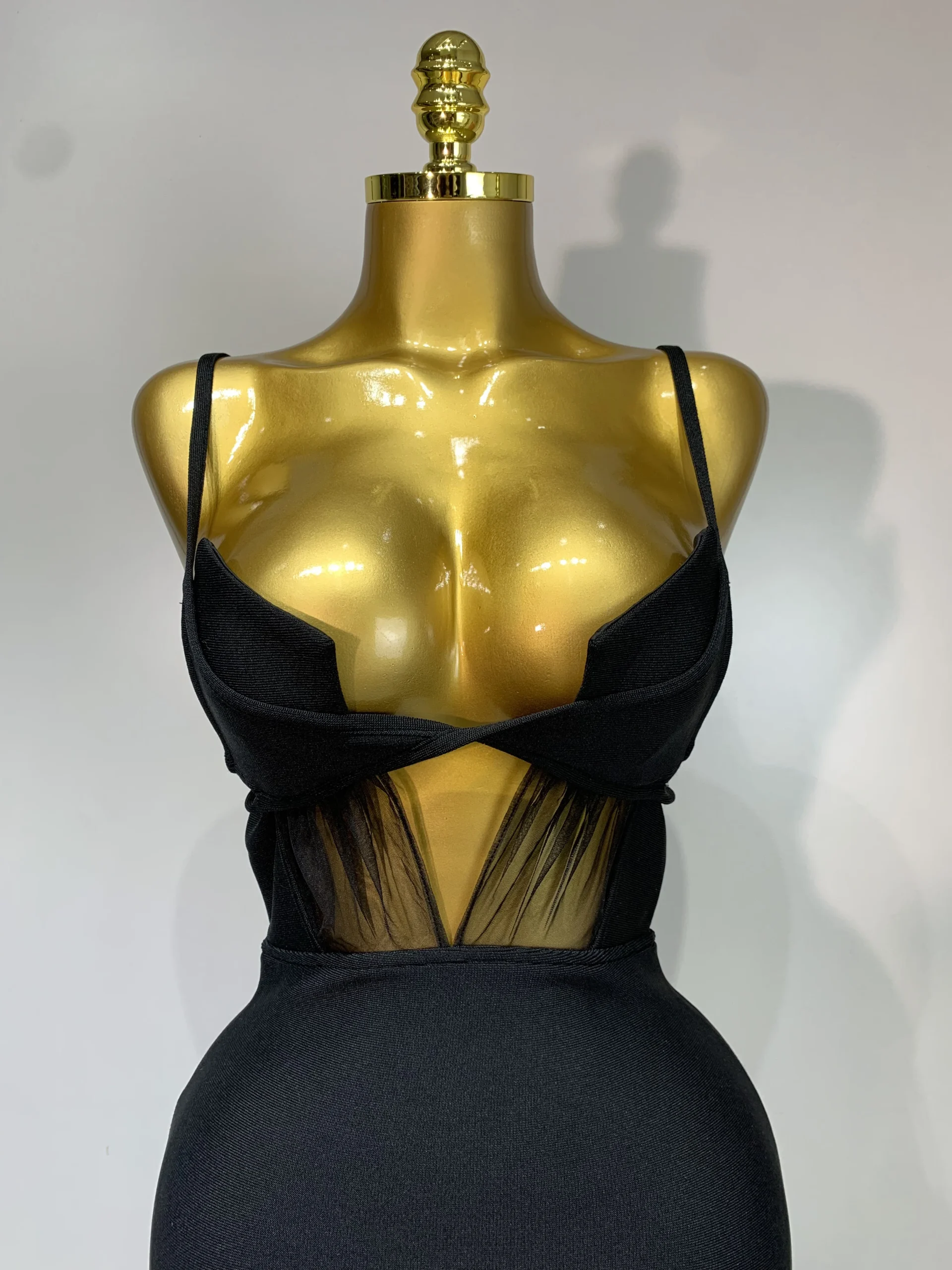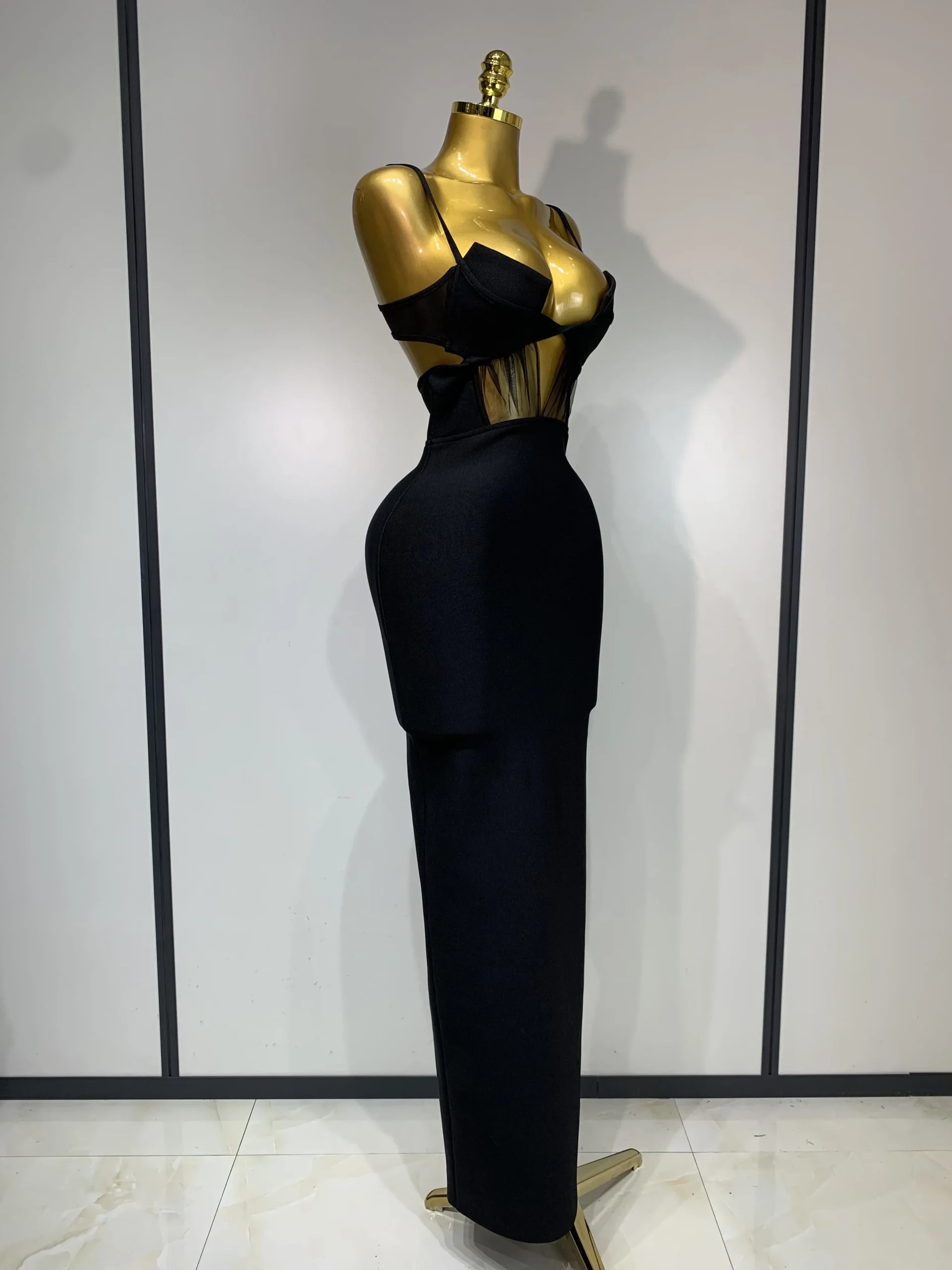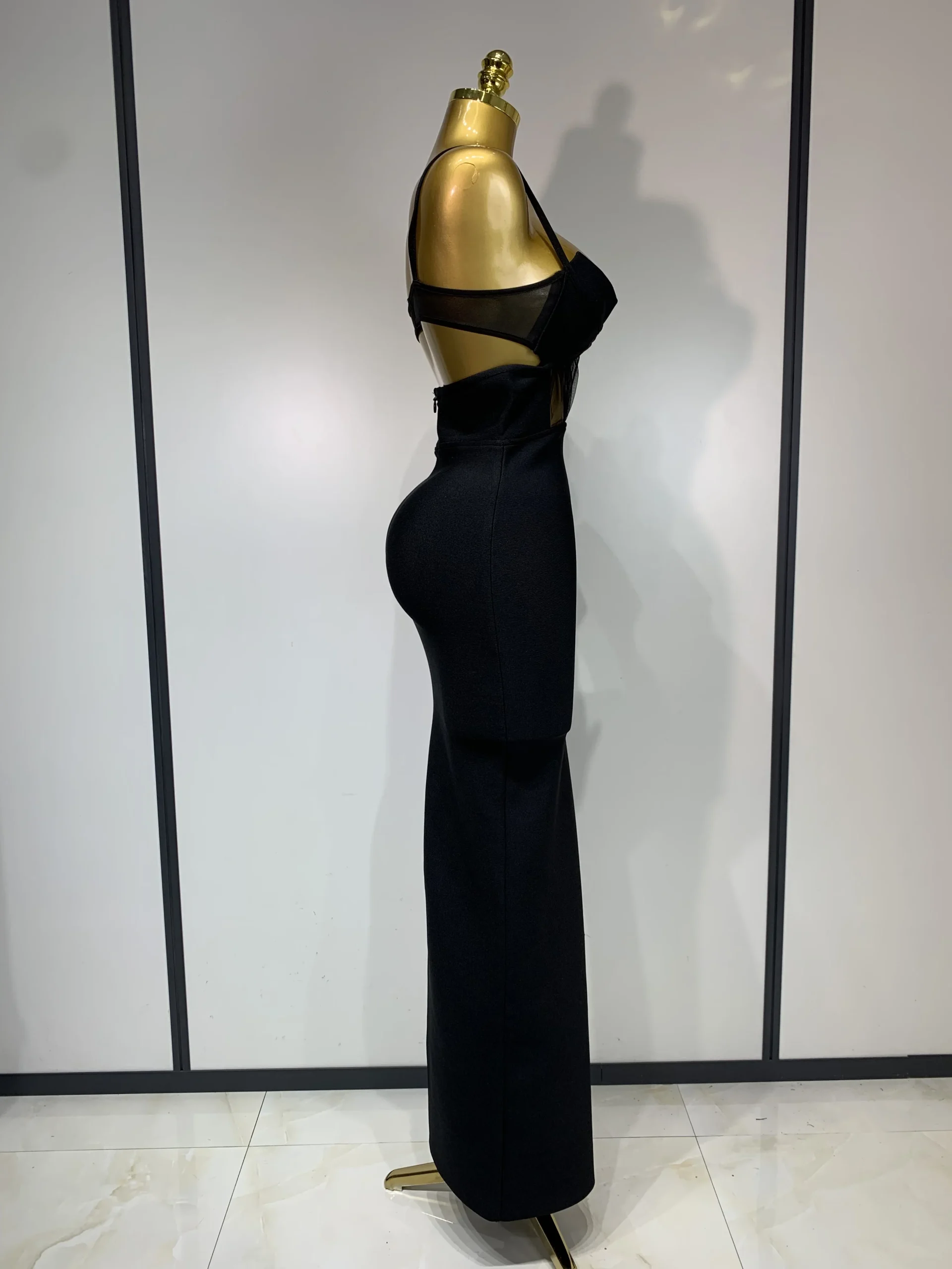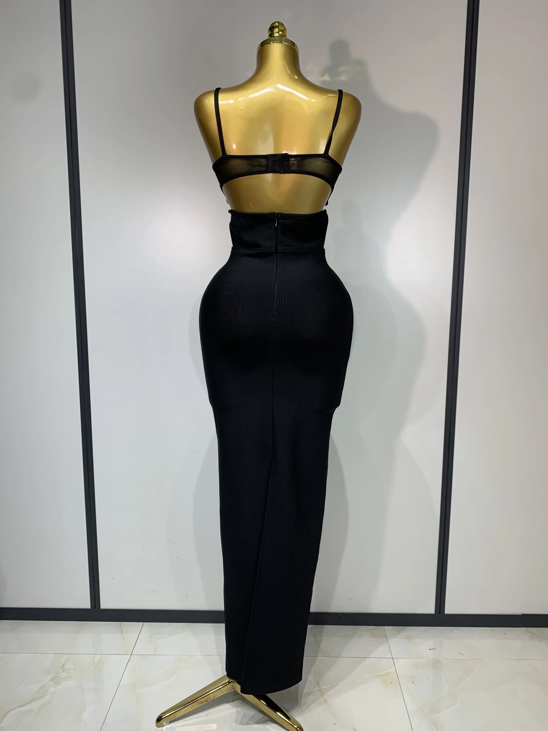 Moda nero con cinturino per spaghetti maxi abito lungo dalla fasciatura in rete ritagliata elegante celebrità aderente abiti da sera per feste di compleanno