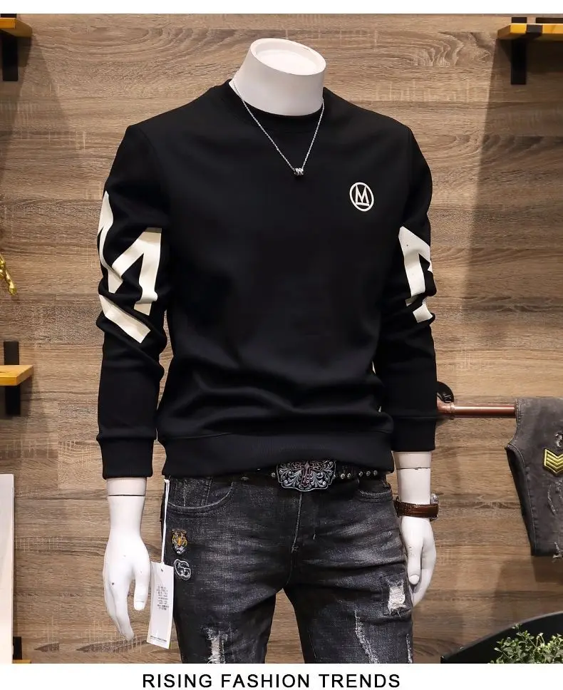 Moda o-collo impiombato Casual stampato lettera felpe abbigliamento uomo 2024 primavera nuovo sciolto tutto-fiammifero top felpe coreane