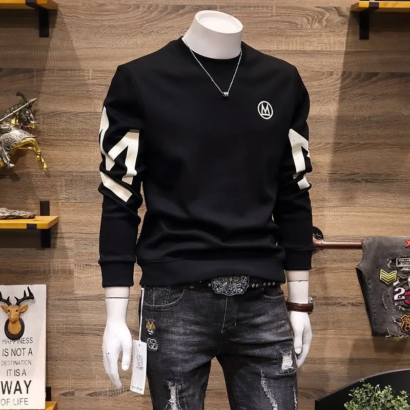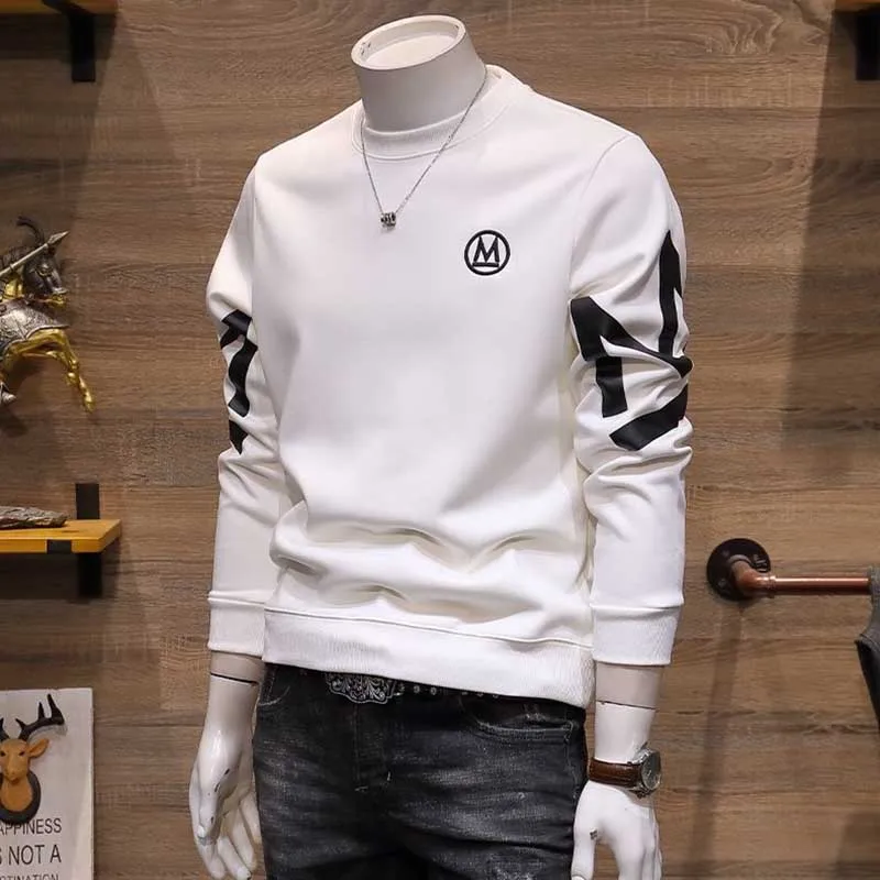 Moda o-collo impiombato Casual stampato lettera felpe abbigliamento uomo 2024 primavera nuovo sciolto tutto-fiammifero top felpe coreane