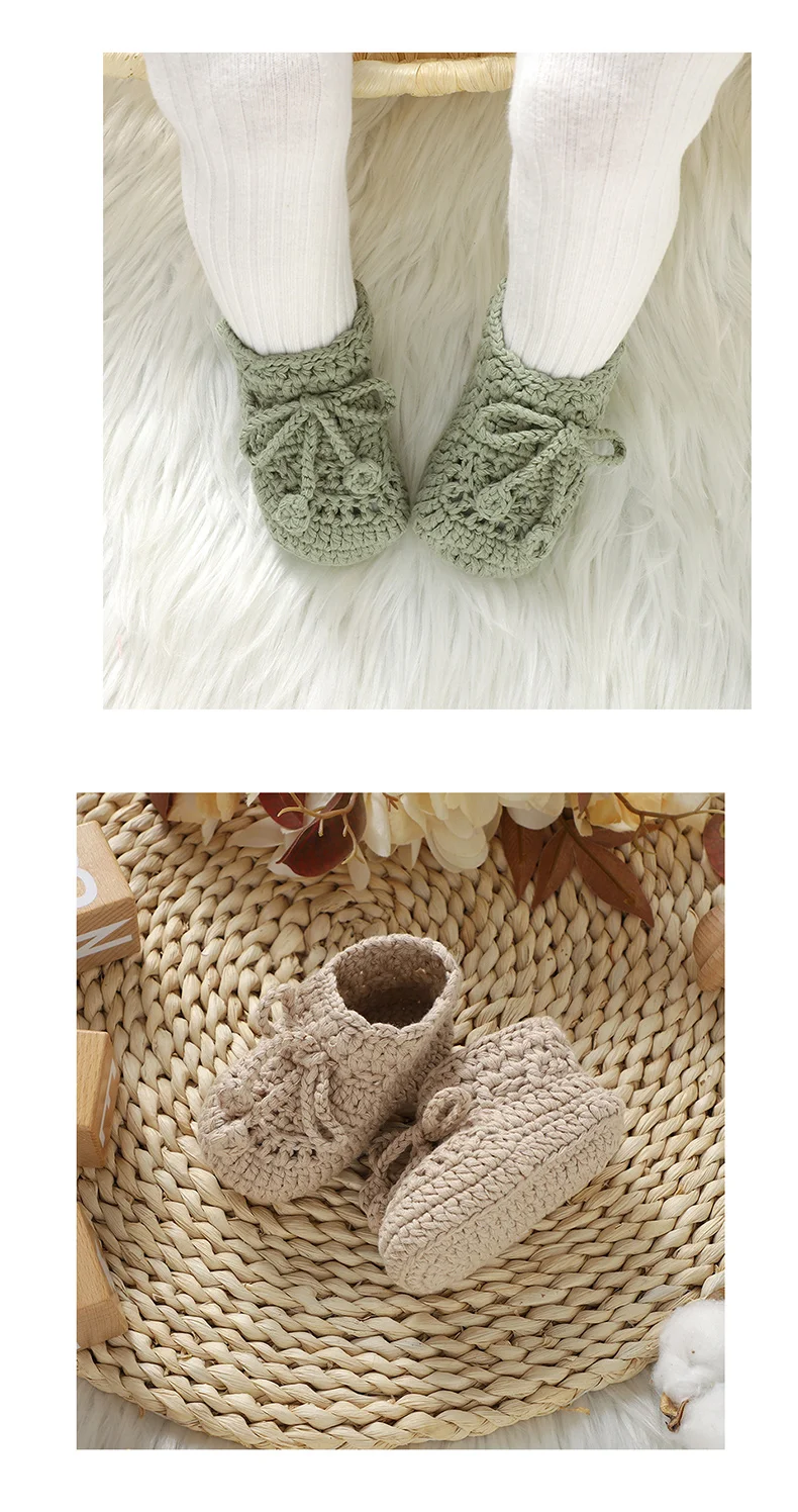 Moda tinta unita fatta a mano in maglia neonato calzini di cotone scarpe 0-1Y neonato bambini ragazzi ragazze suole morbide antiscivolo primi camminatori