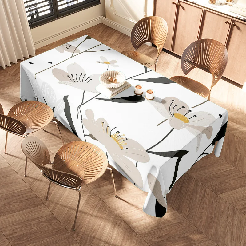 Modern Geometric Floral Dining Tablecloth Elegant White Black Pattern for Kitchen Decor Premium Quality PVC Table Liner with Non