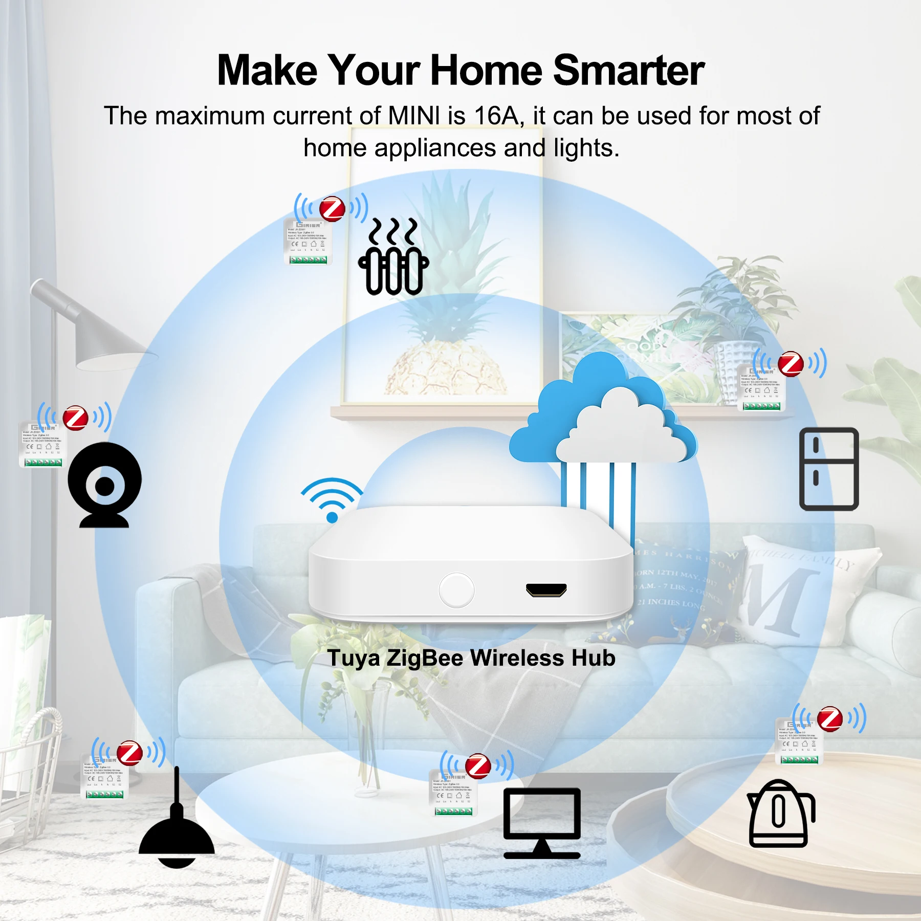Un hub Tuya ZigBee è un must per il mini interruttore intelligente per il controllo remoto dell’app e il controllo vocale.Anche, puoi collegare altri prodotti Tuya ZigBee con il hub per realizzare un sistema domestico intelligente completo per la tua casa.
