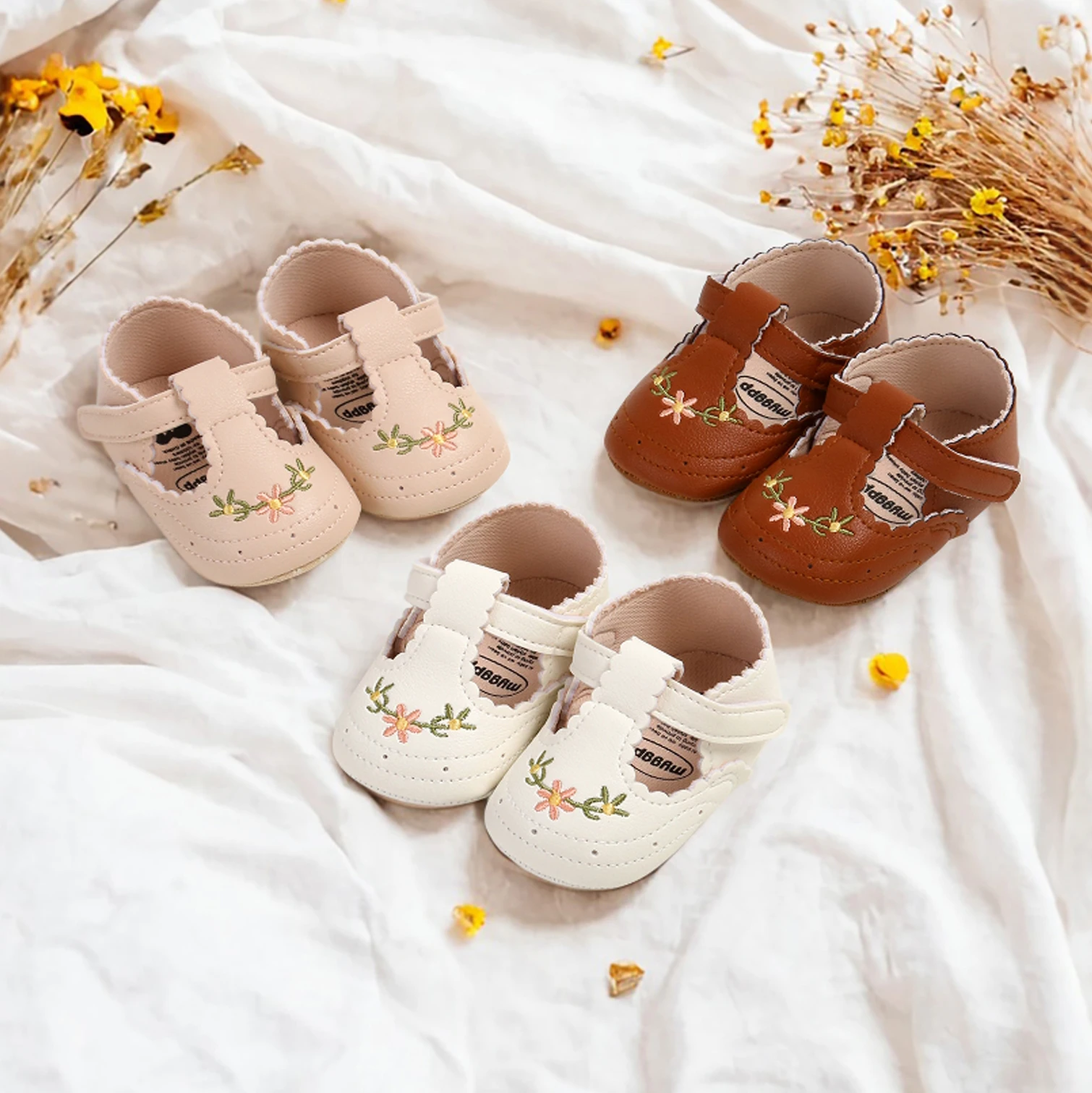 Morbida pelle pu antiscivolo scarpe per bambini appena nati ricamo floreale nuova moda in primavera e autunno 0-1 anno b