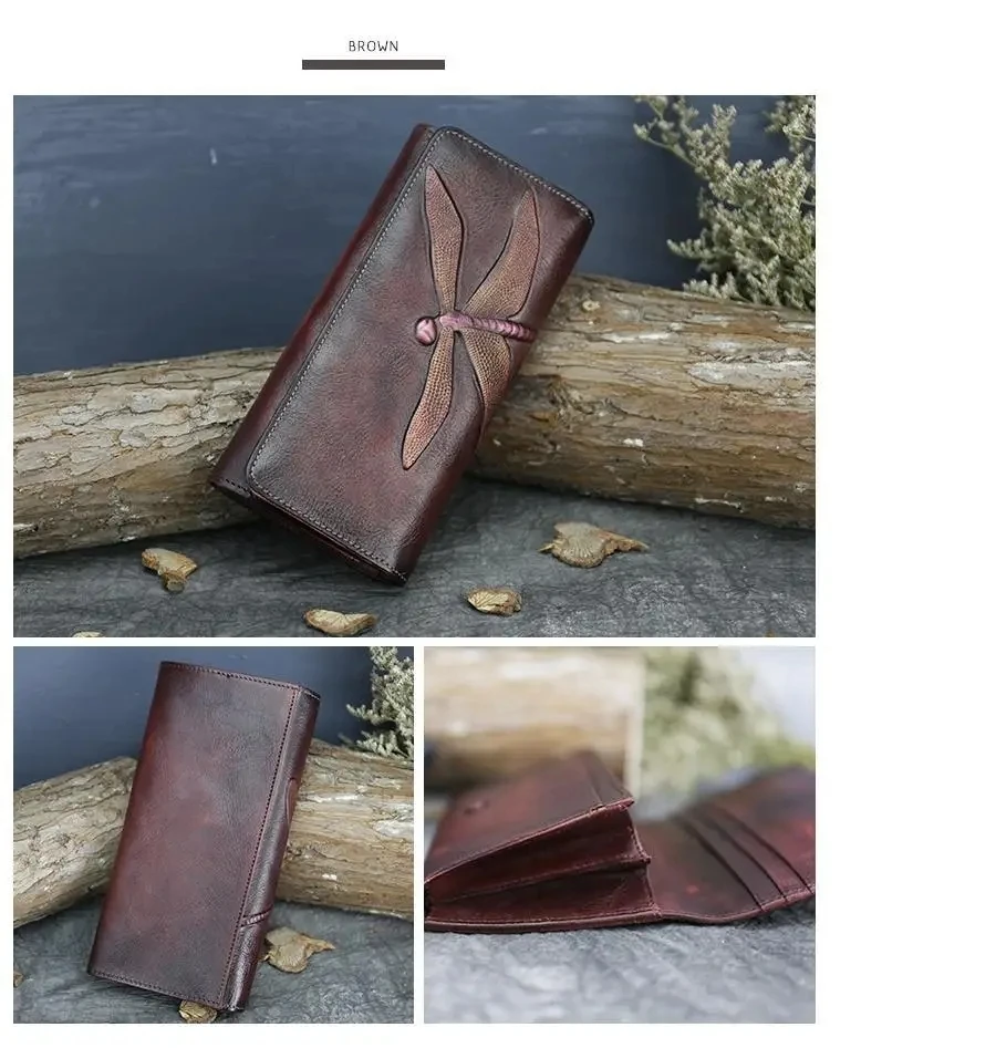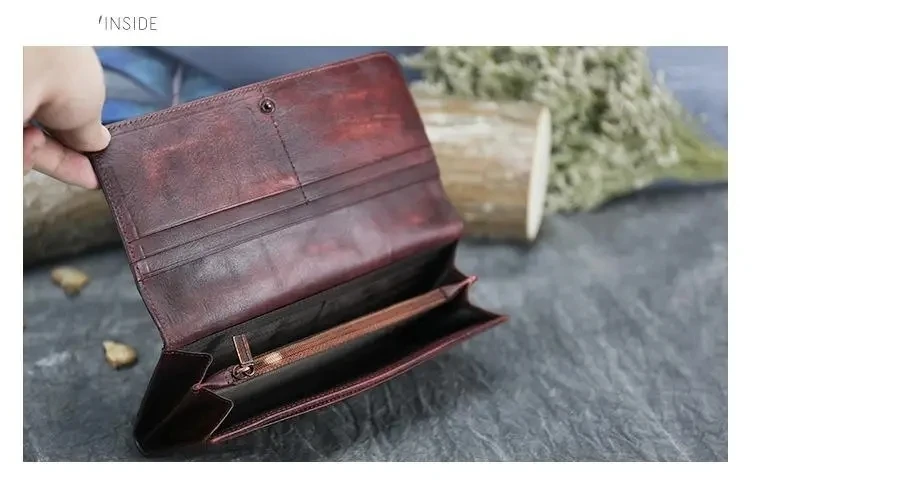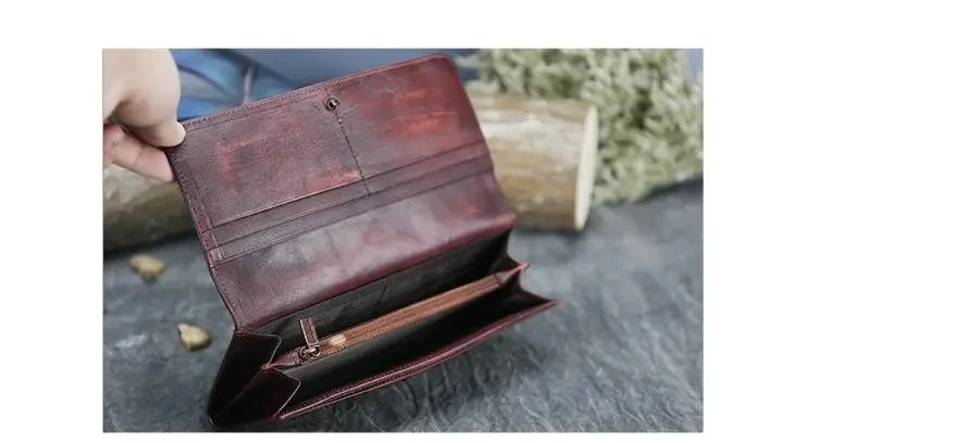 MOTAORA Portafoglio da donna Porta carte retrò in pelle di vacchetta Nuova borsa lunga da donna in vera pelle Portafogli fatti a mano Borsa per telefono da donna Note: 1. A causa dell’angolo di ripresa e dei problemi di illuminazione, potrebbe esserci una leggera differenza con l’immagine reale è puramente normale. 2. Errore entro 1 cm dovuto alla misurazione manuale.