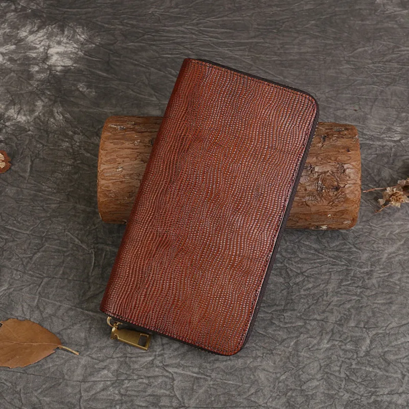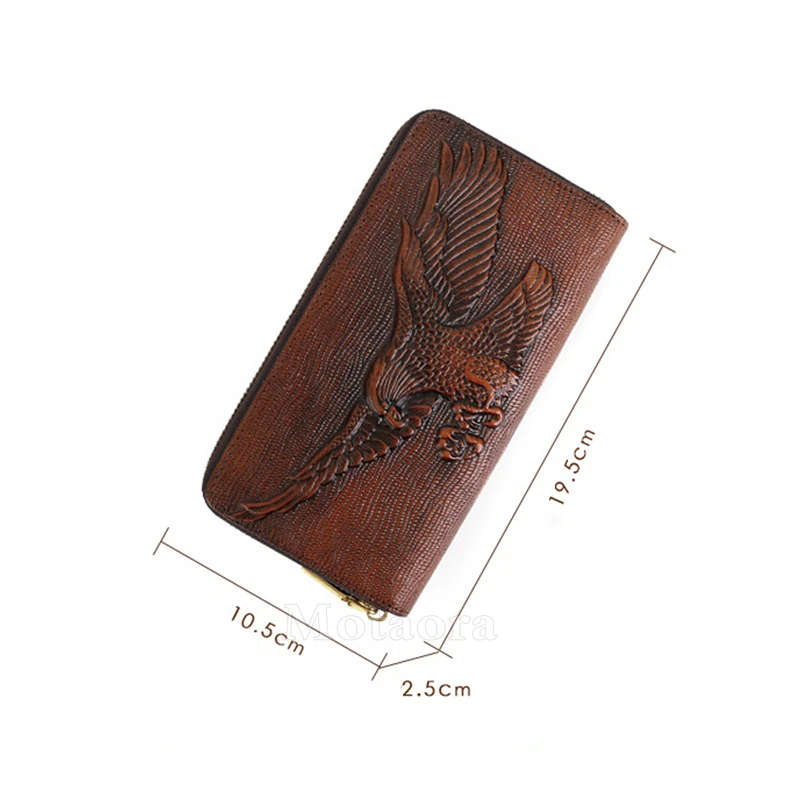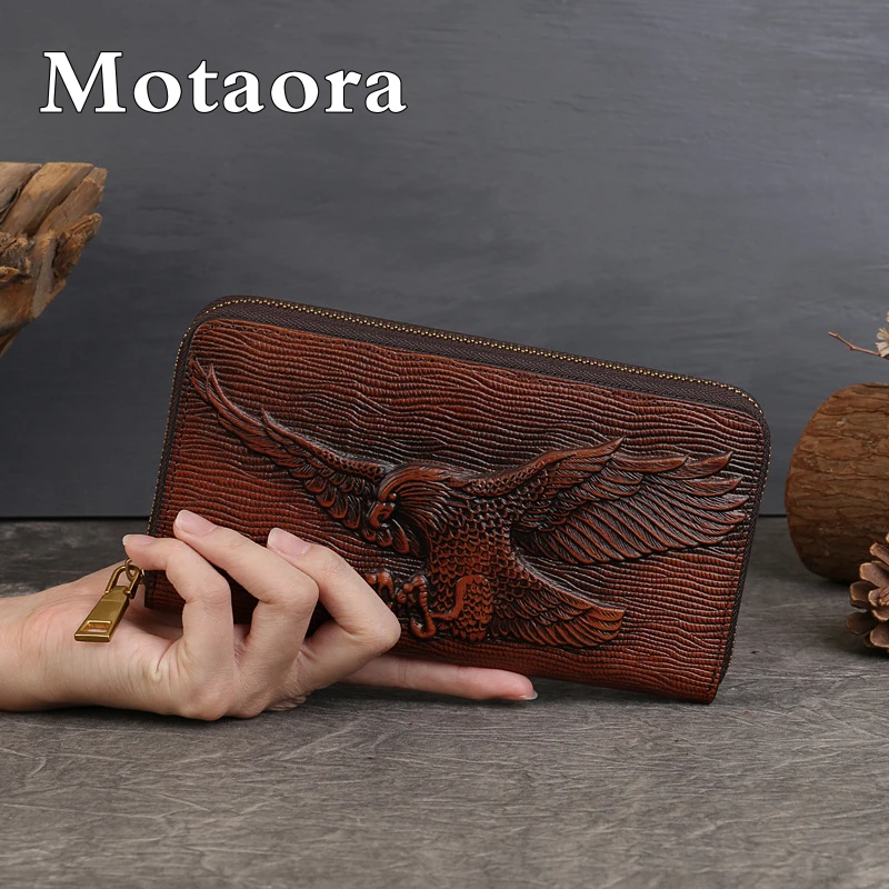 Portafoglio da uomo in vera pelle MOTAORA, porta carte con stampa aquila in pura pelle bovina con borsa lunga con cerniera