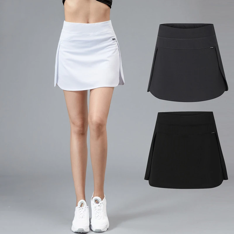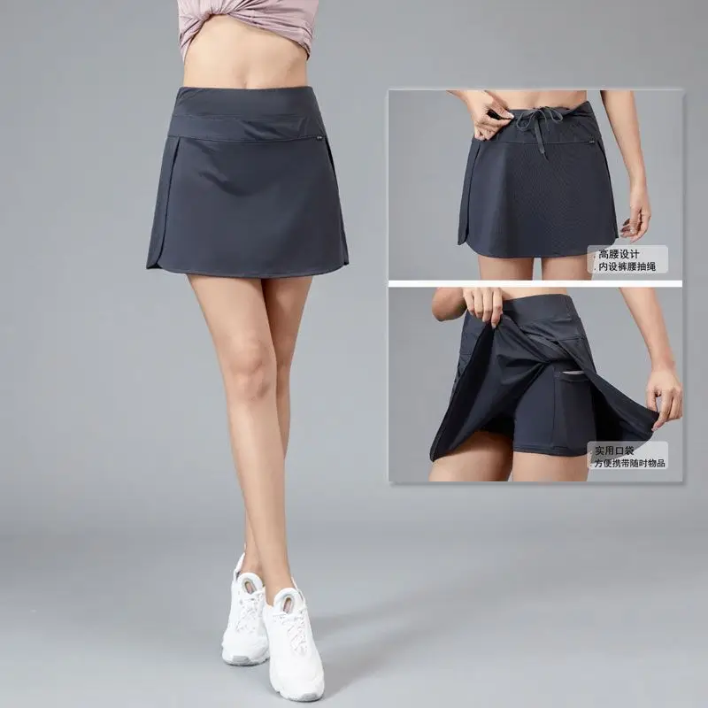 Motion gonna corta estate donna elastico in vita Forking falso due pezzi vita alta Bodybuilding Casual gonna All-match a prezzi accessibili