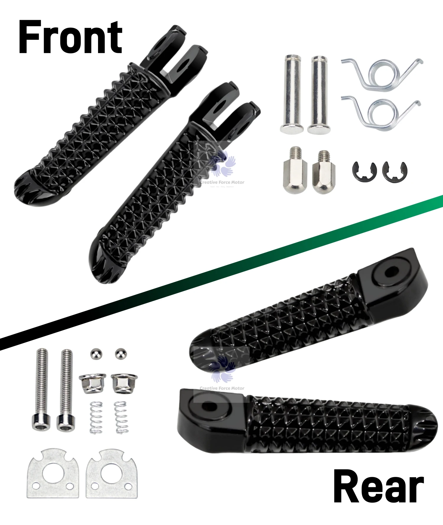 La confezione include:1 paio di pedane anteriori/posteriori o 1 set di pedane, dipende dalla scelta.