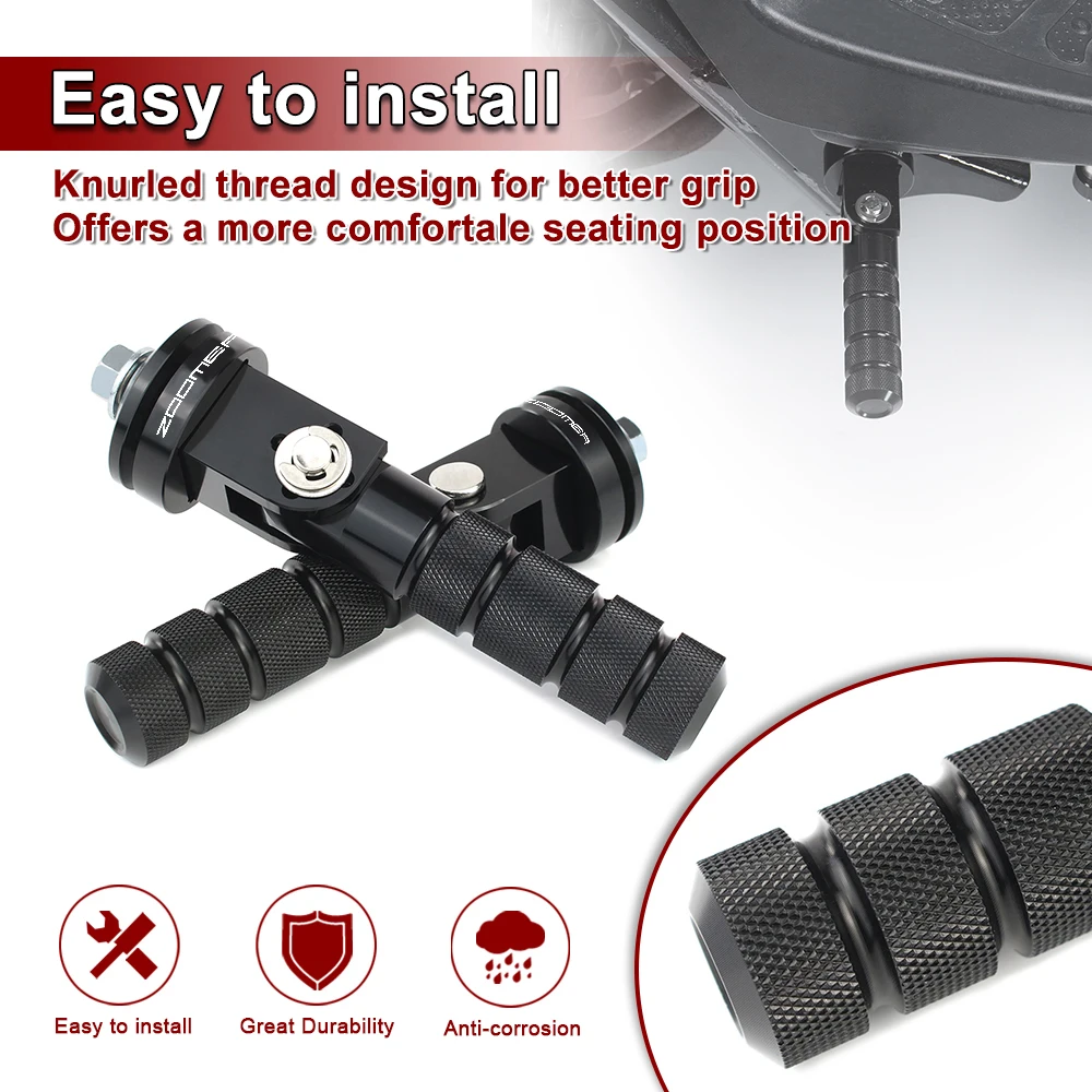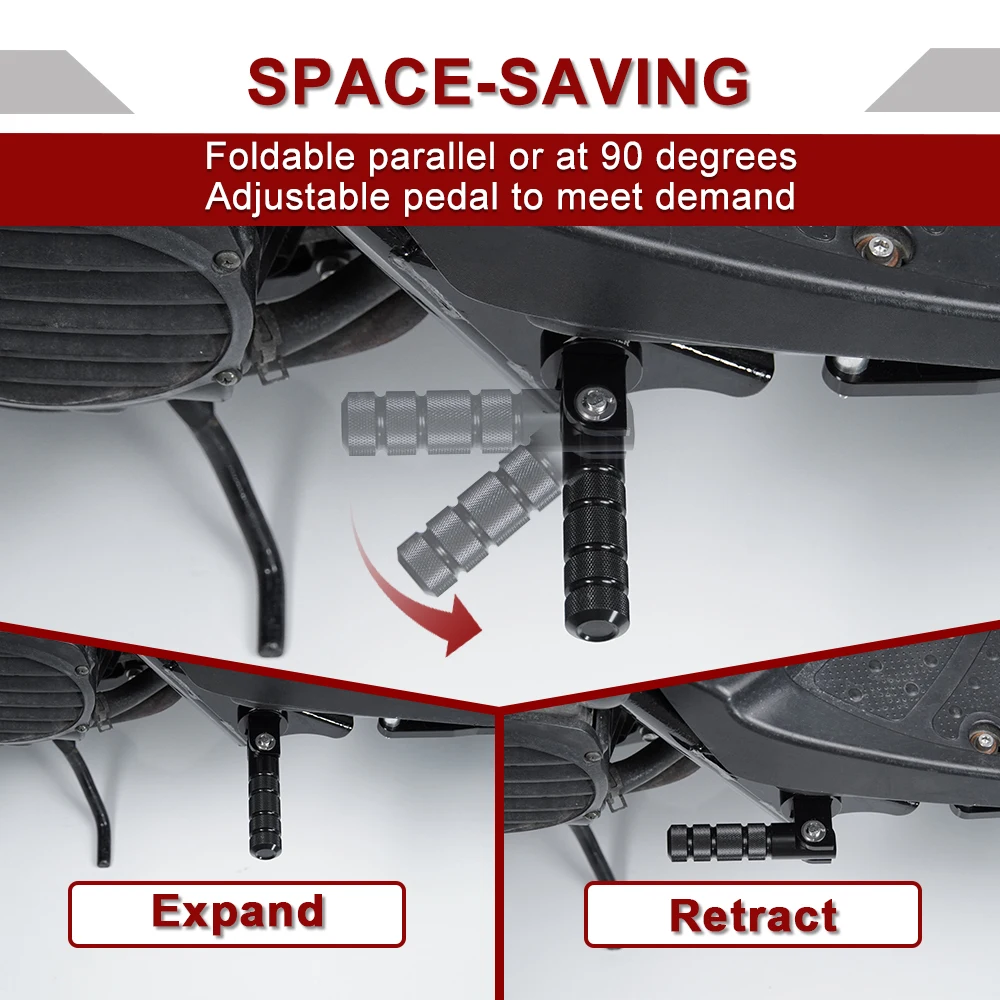 Ilpedaneforniscono fino a 90 diverse posizioni angolari, prevenendo efficacemente lo slittamento e sono eccellenti per la frazione del piede, consentendo al passeggero di afferrare più stabile sui pedali. Permite ancheaffinché i picchetti siano piegatiquando non in uso, il che migliora sia la comodità di stoccaggio che di trasporto.
