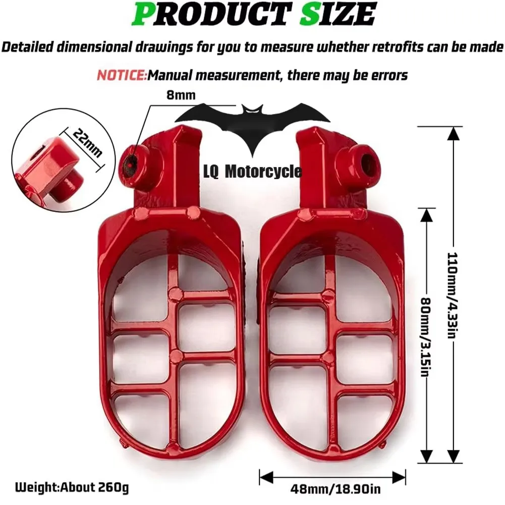 Pedane in alluminio poggiapiedi moto Dirt Bike per XR50R PW50 CRF50 70 TW200 KLX110 CRF50 50cc 70cc 90cc 110cc 125ccLa confezione include: 2 pedane.2 viti.2 perni.2 ganci a molla.Antiscivolo: la superficie antiscivolo impedisce al piede di scivolare via dal pedale, fornendo una pedalata confortevole e alleviando l’affaticamento del piede.Ampia applicabilità: adatto per XR50 XR70 DT50 PW50 PW80 TTR110 TT225 TW200 WR250 XT250 XT350 la maggior parte delle bici Pit/Dirt a 4 tempi 50cc-70cc 110cc 125cc 150cc, quasi tutte le marche di bici dalla CinaAvviso: si tratta di prodotti aftermarket, quindi forse sono necessarie piccole modifiche, assicurati di poterlo sapere prima di acquistare. Assicurati che il numero di parte di cambio corrisponda alla parte che desideri sostituire.Servizio post-vendita: forniamo un servizio post-vendita, in caso di problemi non esitate a contattarci in qualsiasi momento, faremo del nostro meglio per trovare la soluzione migliore
