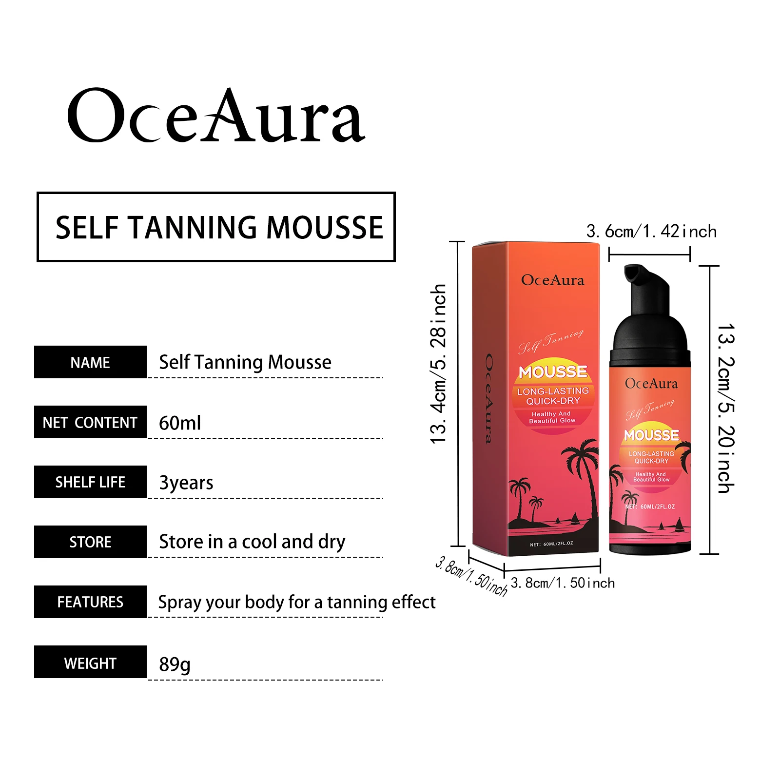 OceAura Mousse Abbronzante Autabbronzante Senza Sole Schiuma Autoabbronzante Istantanea Aspetto Naturale Abbronzante Dorato Bagliore Lozione Idratante Abbronzante Finto 60 ml/pz