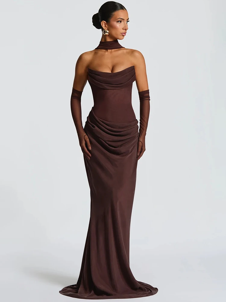 Mozision Abito lungo sexy senza schienale con spalle scoperte Abito da donna Elegante colletto a sciarpa senza spalline senza maniche aderente Abiti da festa da club