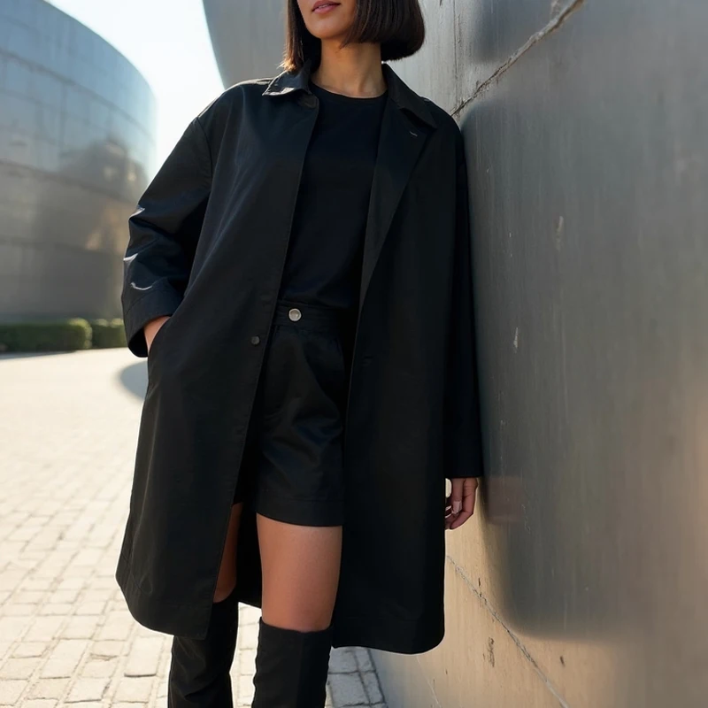 MUJER 2025 Giacca a vento da donna nera con cerniera Cappotti lunghi invernali per donna Trench da donna a maniche lunghe Cappotto autunnale femminile 1MUJER 2025 Giacca a vento da donna nera con cerniera Cappotti lunghi invernali per donna Trench da donna a maniche lunghe Cappotto autunnale femminile