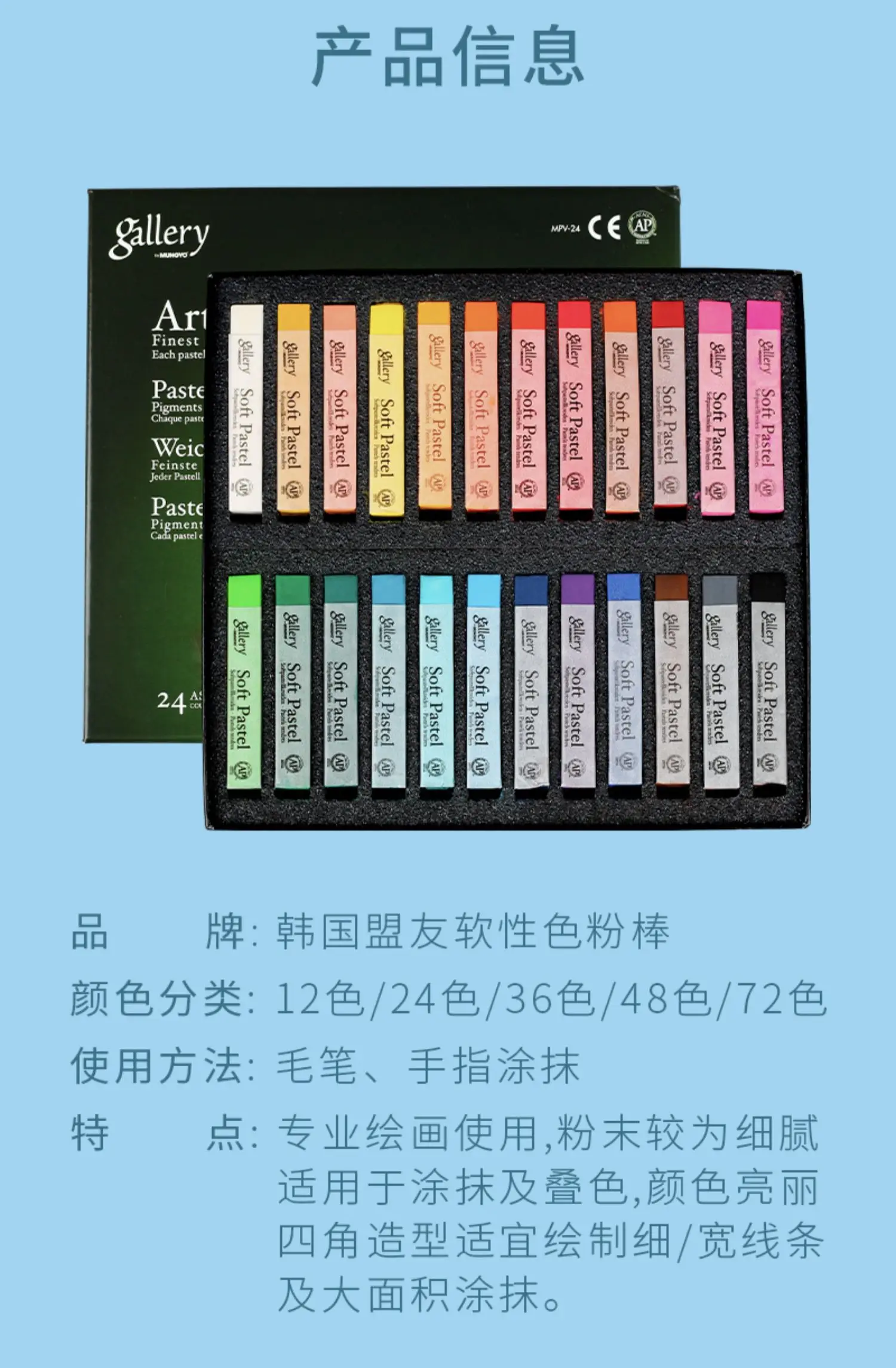 Mungyo Gallery Gesso quadrato pastello morbido 24/36/48 colori per pittura artistica, disegno, miscelazione, pastelli a olio Pastelli Rifornimenti d’arte