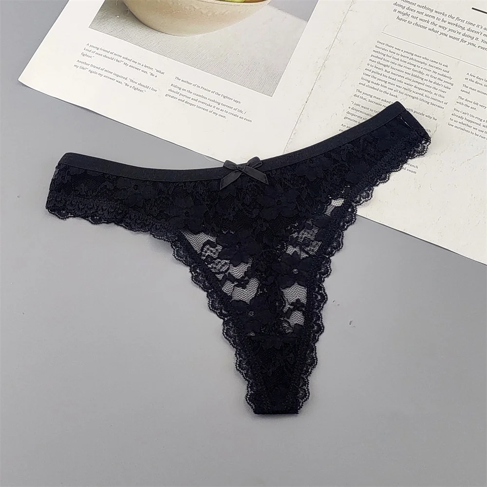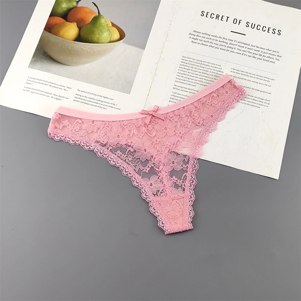 Mutandine di cotone di pizzo da donna 3 pezzi Biancheria intima sexy taglie forti Scava fuori Lingerie G-String Vita bassa Perizoma trasparente Intimo morbido