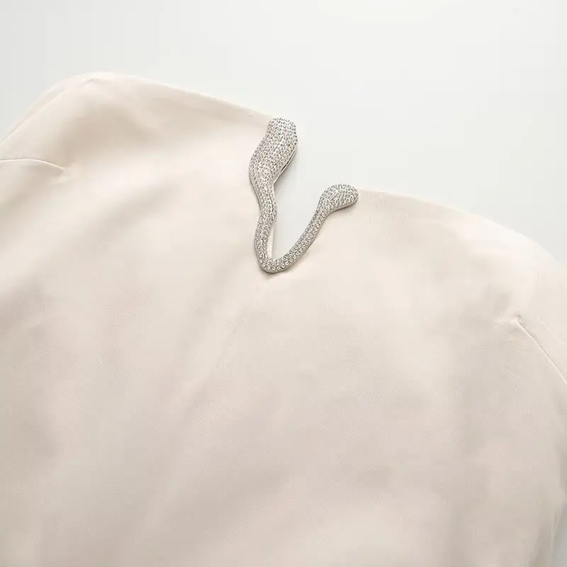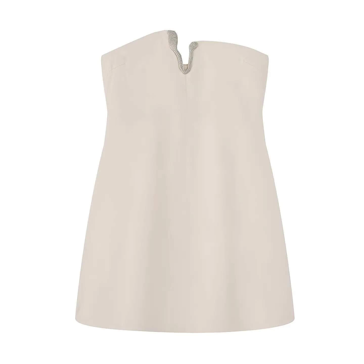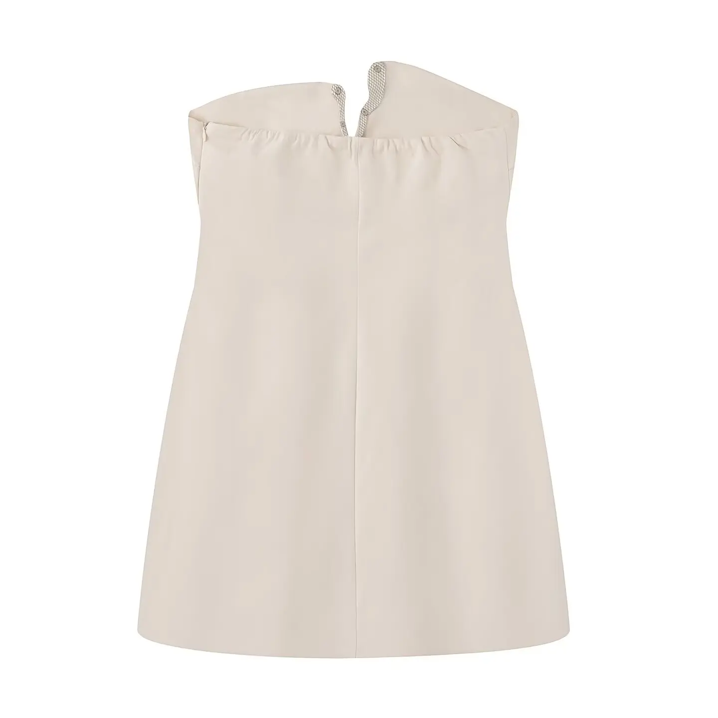 MYSTZA2025 delle nuove donne di estate casual sottile moda gioielli in metallo intarsiato colletto asimmetrico tubo superiore abito corto